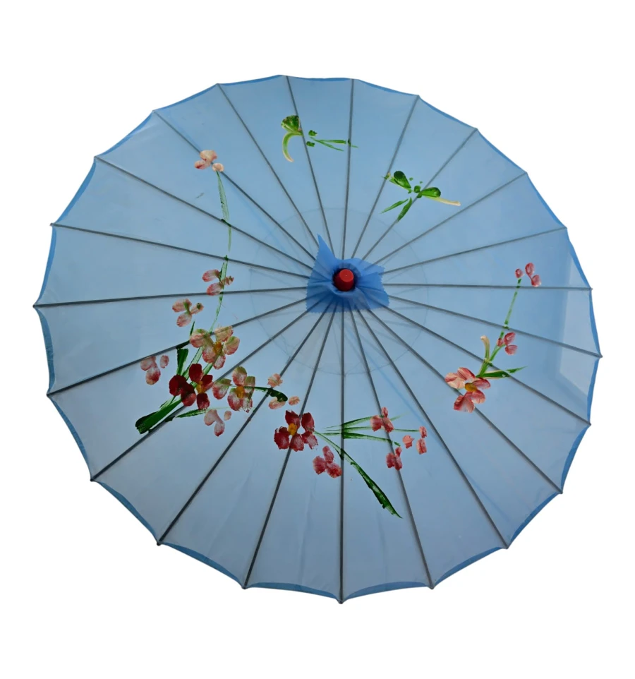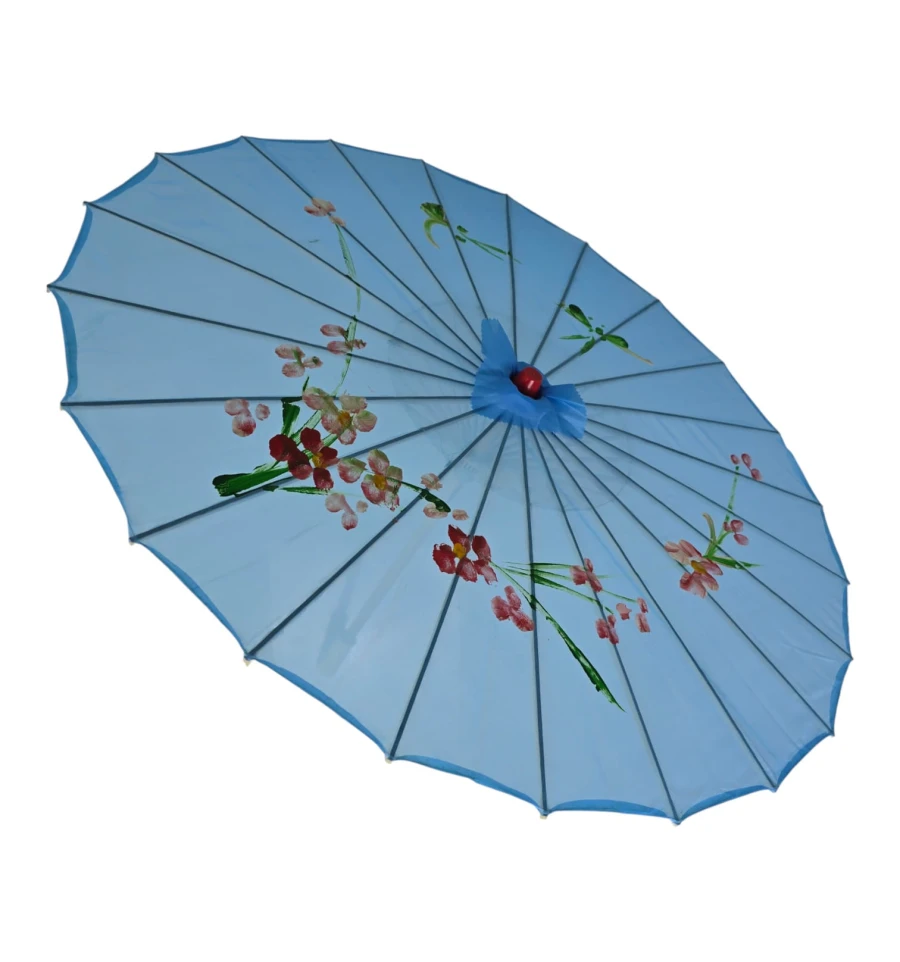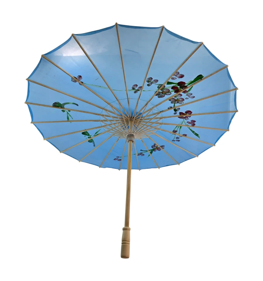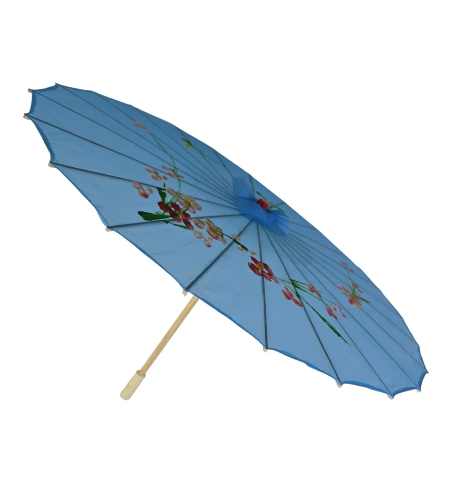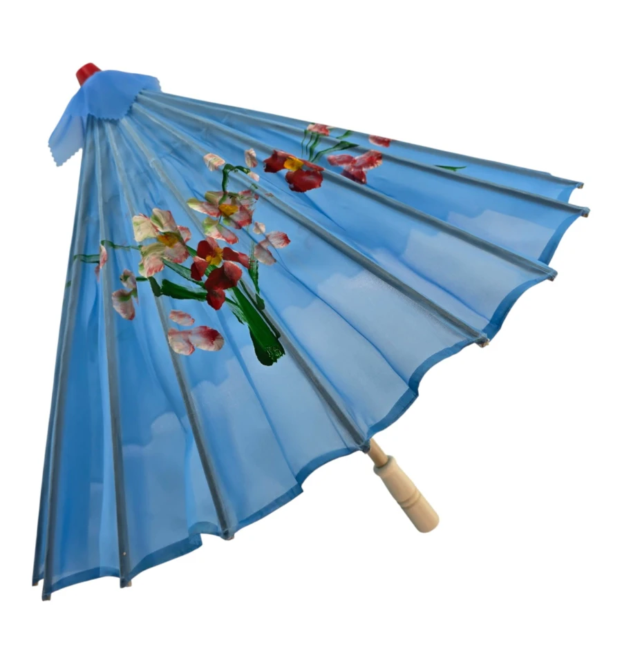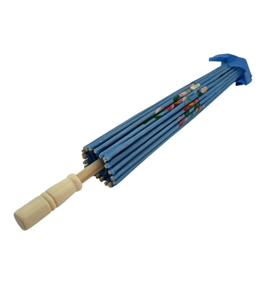 Зонтик из бамбука и шелка голубой ( 55х 82 см)