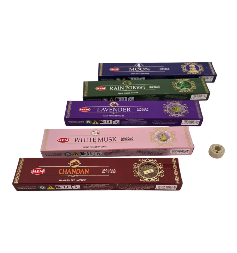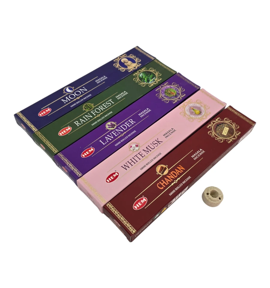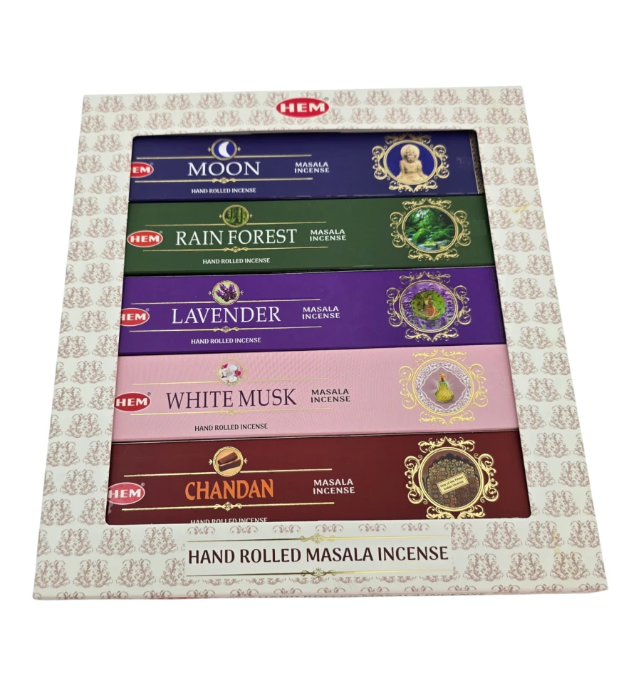 Набор благовоний HEM Masala 5 ароматов по 15 г Moon Rain Forest Lavender White Musk Chandan