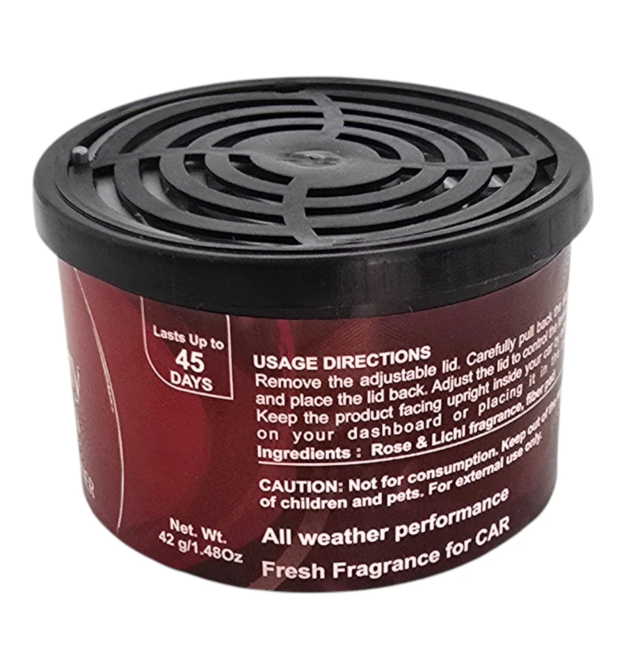 Как использовать. Снимите пластиковую крышку. Аккуратно отогните алюминиевую фольгу на нужную площадь. Поверните верхнюю решетку чтобы отрегулировать интенсивность аромата. Установите баночку вертикально в подстаканник или под сиденье и прикрывайте крышку когда аромат не нужен. Храните вдали от детей и животных.