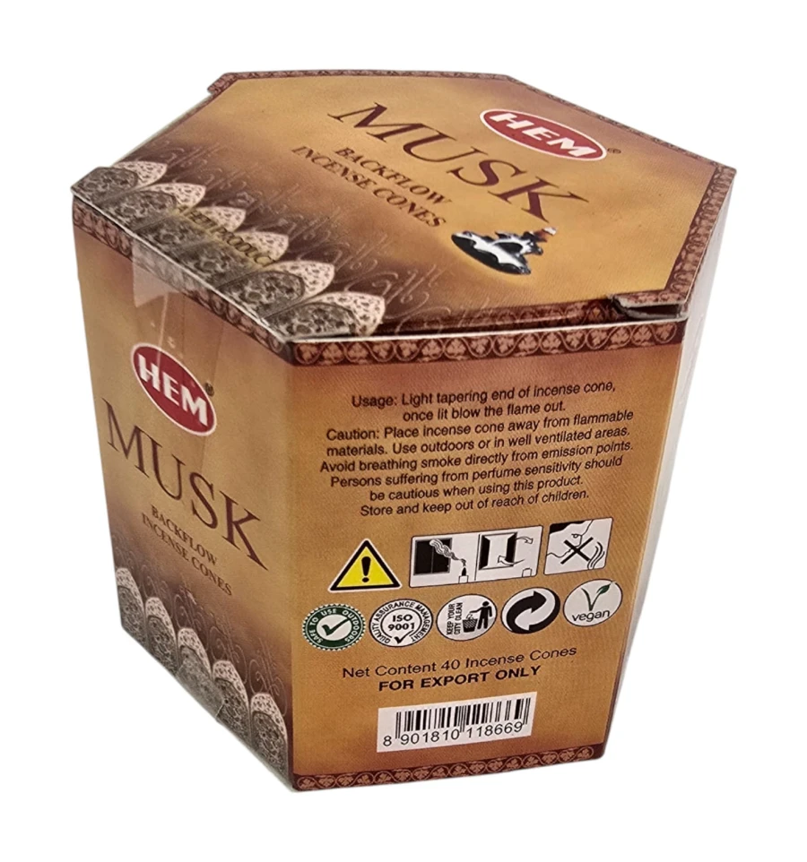 Теги: HEM, благовония, конусы backflow, мускус, musk, аромат для дома, индийские благовония, аромаконусы, медитация, йога, подарок
