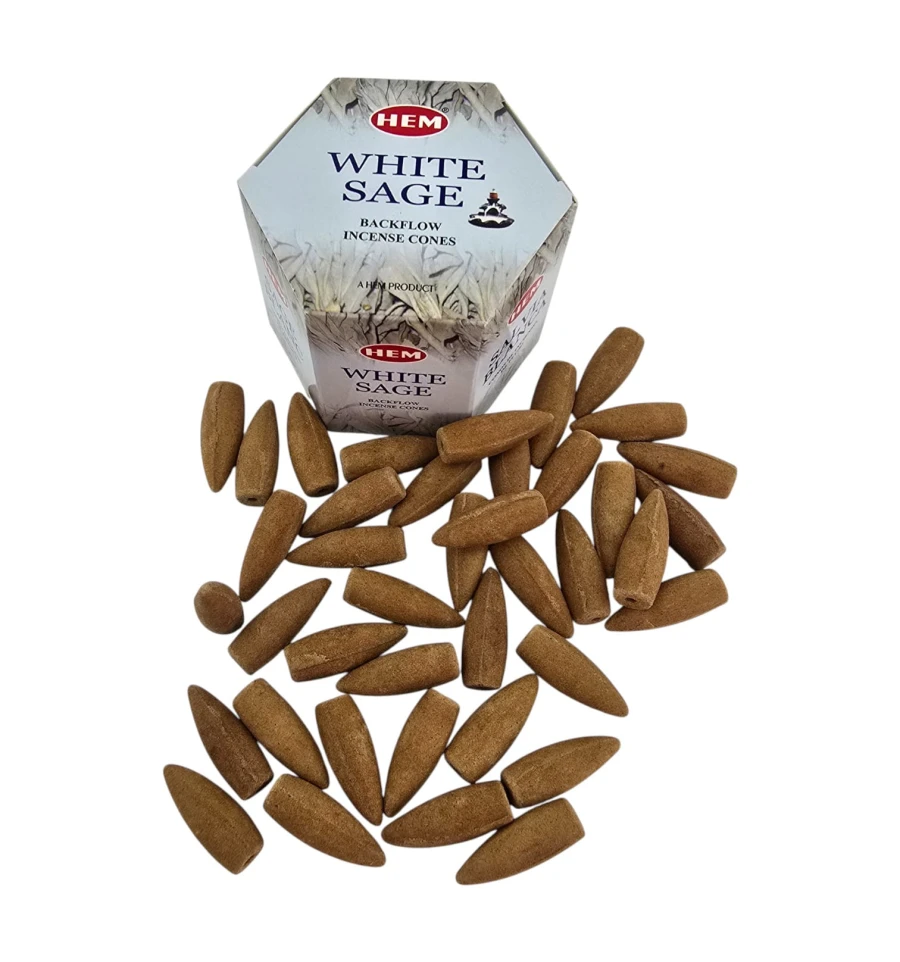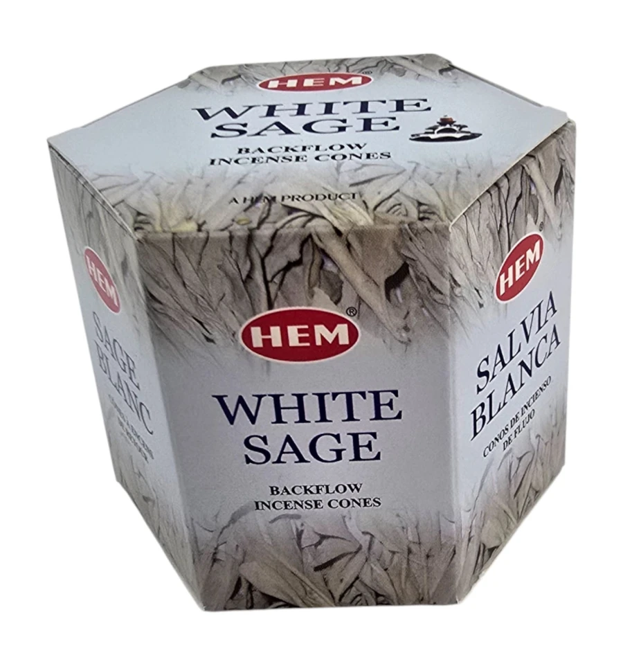 Теги: HEM, благовония, конусы backflow, белый шалфей, white sage, аромат для дома, индийские благовония, аромаконусы, медитация, йога, подарок