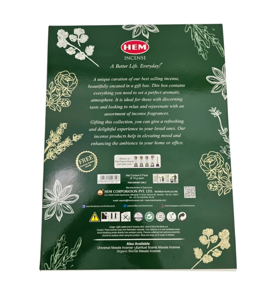 Подарочный набор благовоний HEM Масала 6 ароматов + подставка