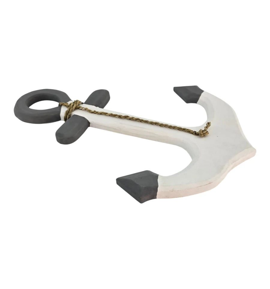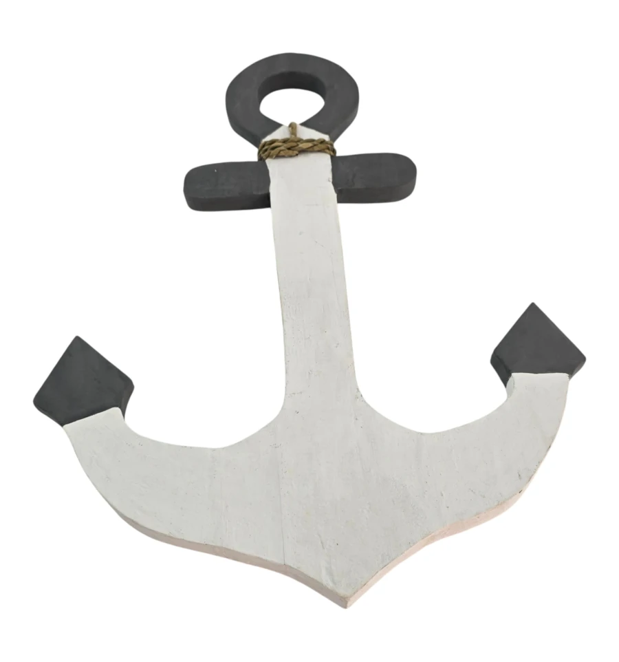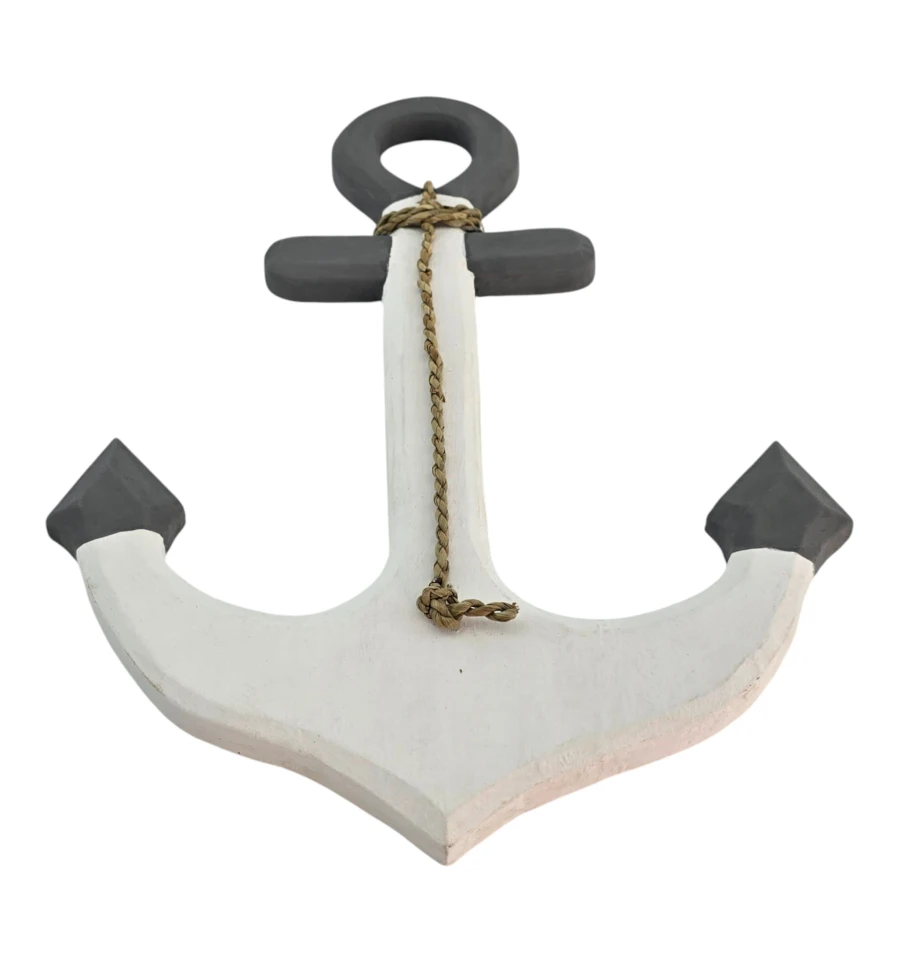 Настенный деревянный якорь в морском стиле с плетёным шнуром. Лёгкий и удобный для подвеса, станет акцентом в гостиной, детской, кафе или витрине с морской тематикой. Матовая фактура и сдержанная бело-серая гамма легко сочетаются с интерьером. Изготовлено из дерева, возможны небольшие отличия от фото.