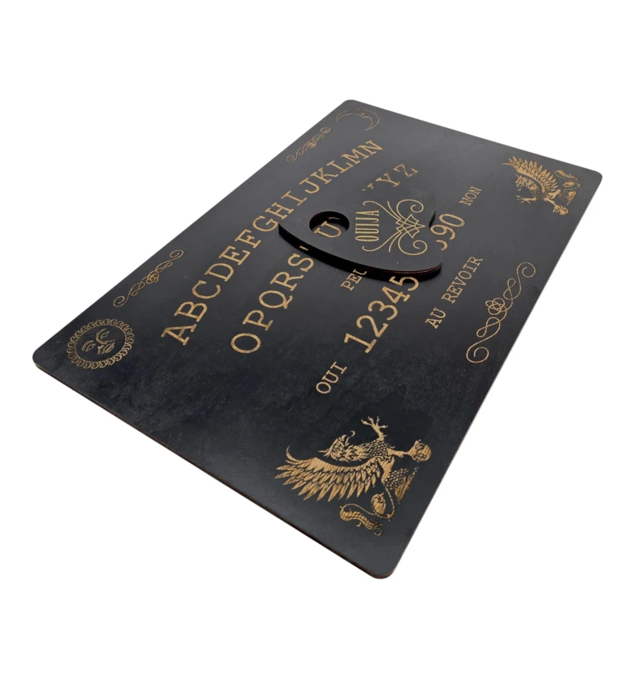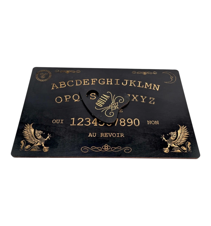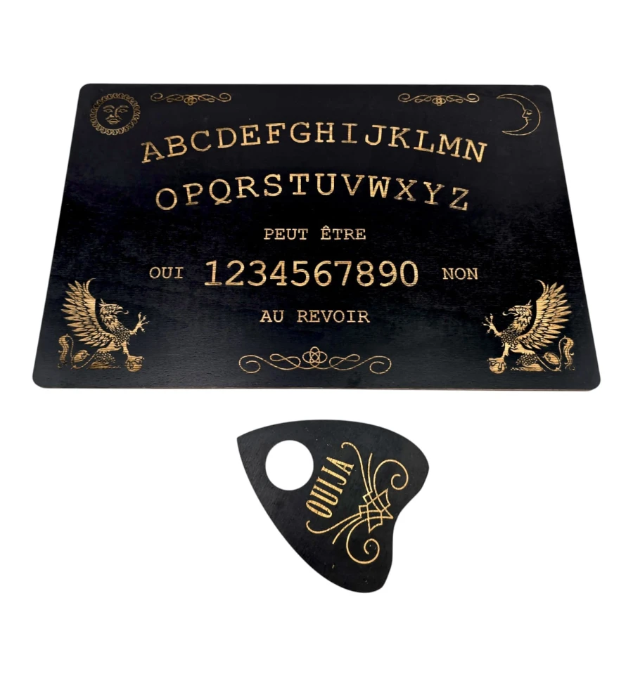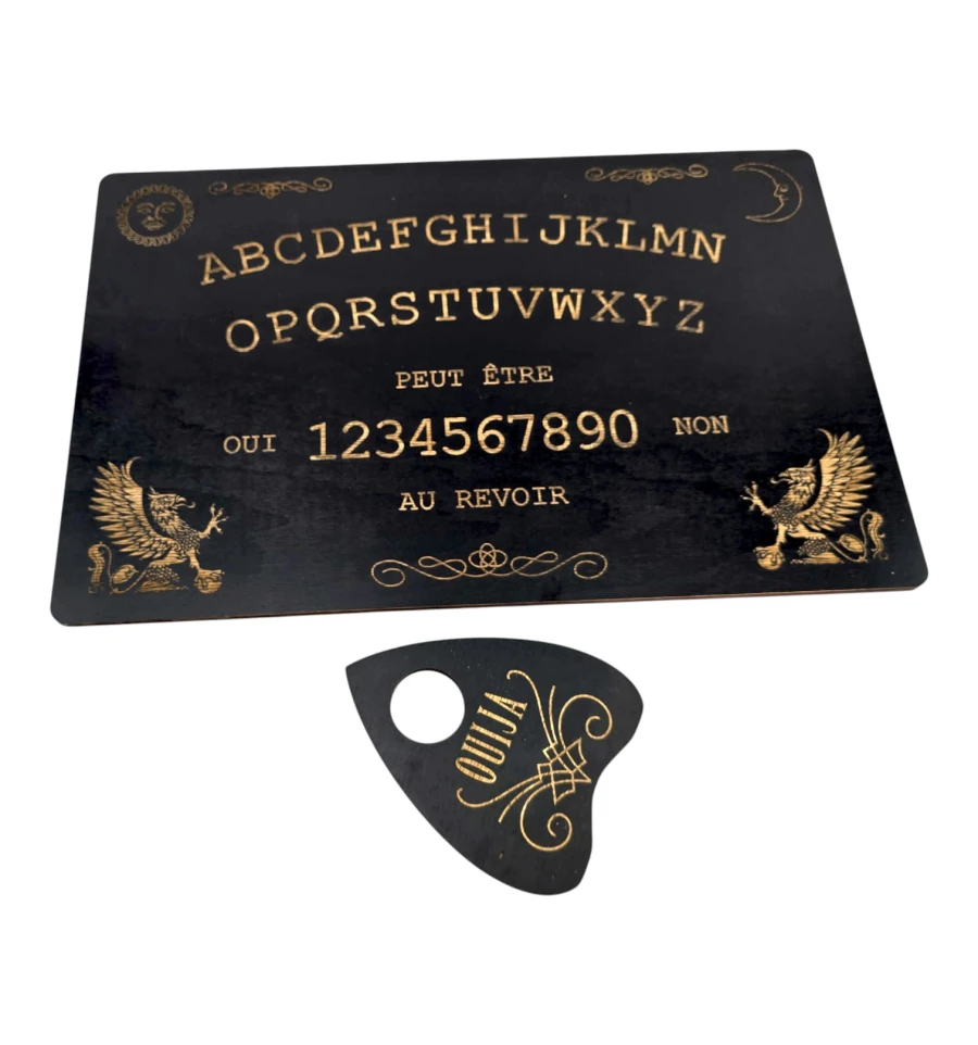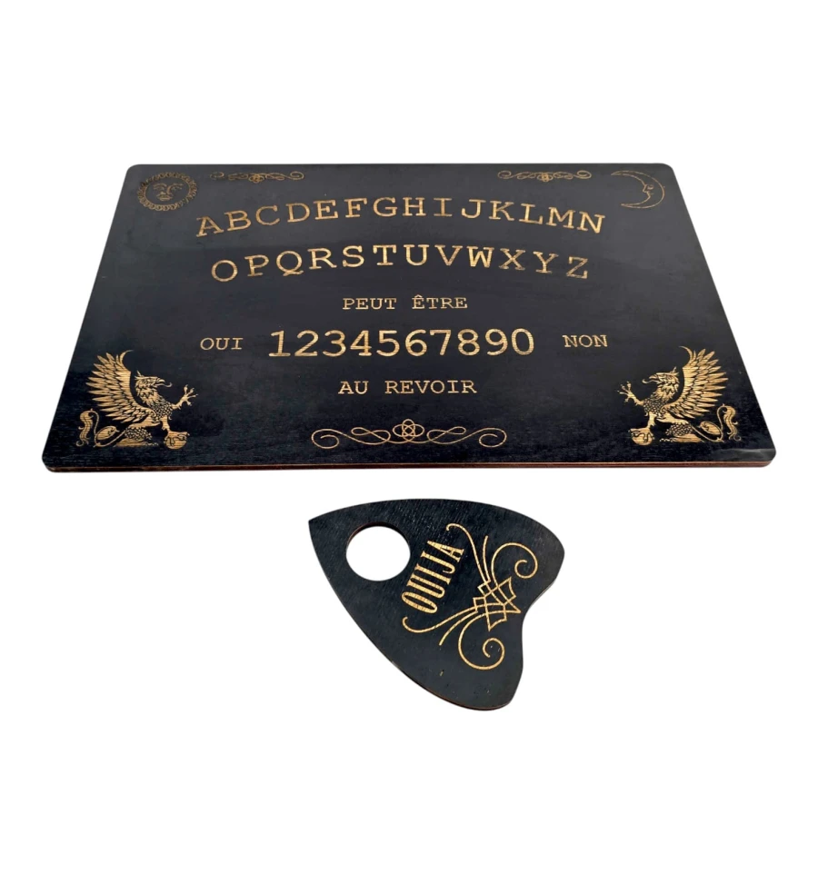 Доска для спиритических сеансов вызова душ умерших с нанесёнными на неё буквами алфавита, цифрами от 1 до 9 и нулём, словами «да» и «нет» и со специальной планшеткой-указателем. Специальная указка или планшетка — указатель передвигается с помощью энергии духов или умерших, двигая стрелку от буквы к букве, от цифры к цифре, таким образом оставляя послания живым и отвечая на вопросы