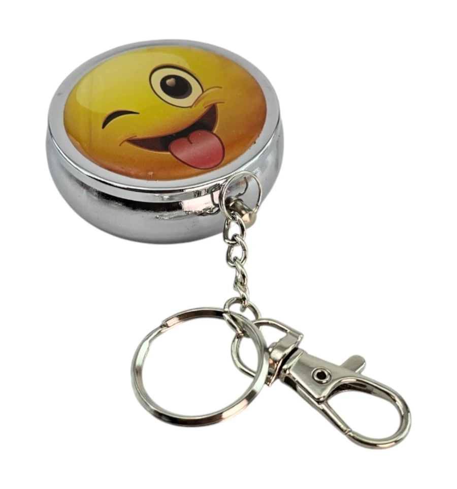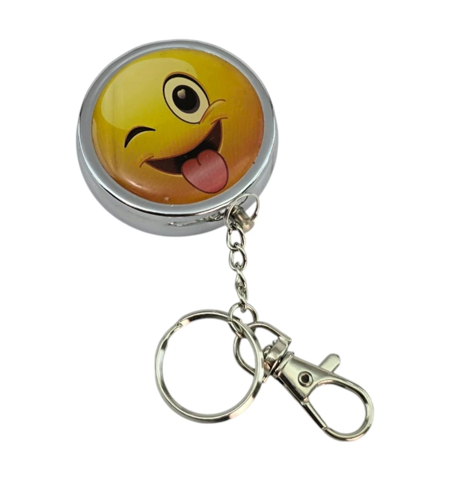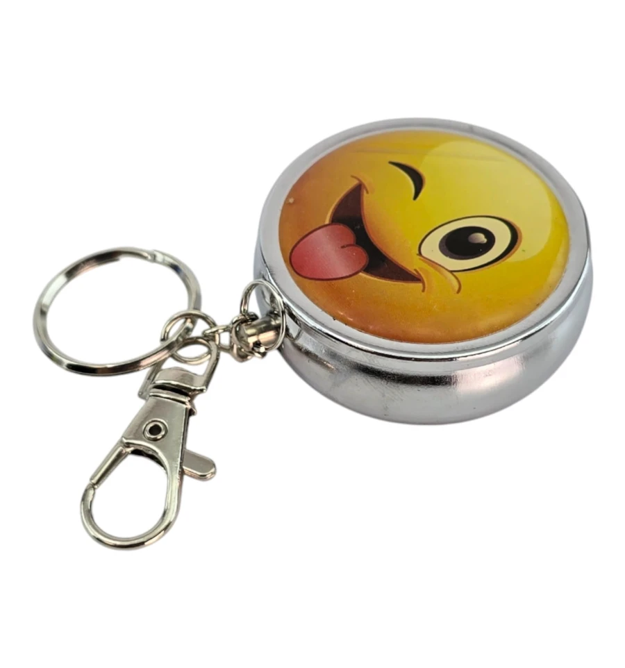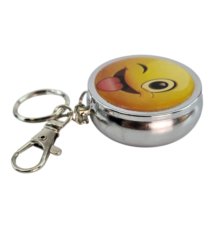 Мини-пепельница для аккуратности в пути. Металлический корпус с откидной крышкой надежно скрывает пепел и запах. Внутри расположен удобный откидной держатель для сигареты (листочек), чтобы положить сигарету без необходимости держать её в руке. Кольцо и карабин позволяют закрепить брелок на ключах, рюкзаке или ремне. Верх украшен ярким принтом с подмигивающим смайликом — заметный акцент и отличный подарок. Подходит для автомобиля, прогулок, фестивалей, террас и мест без стационарной пепельницы.