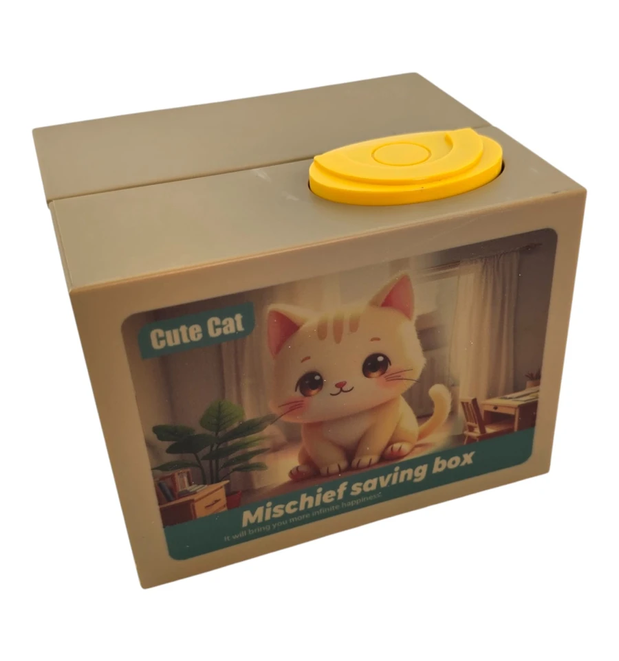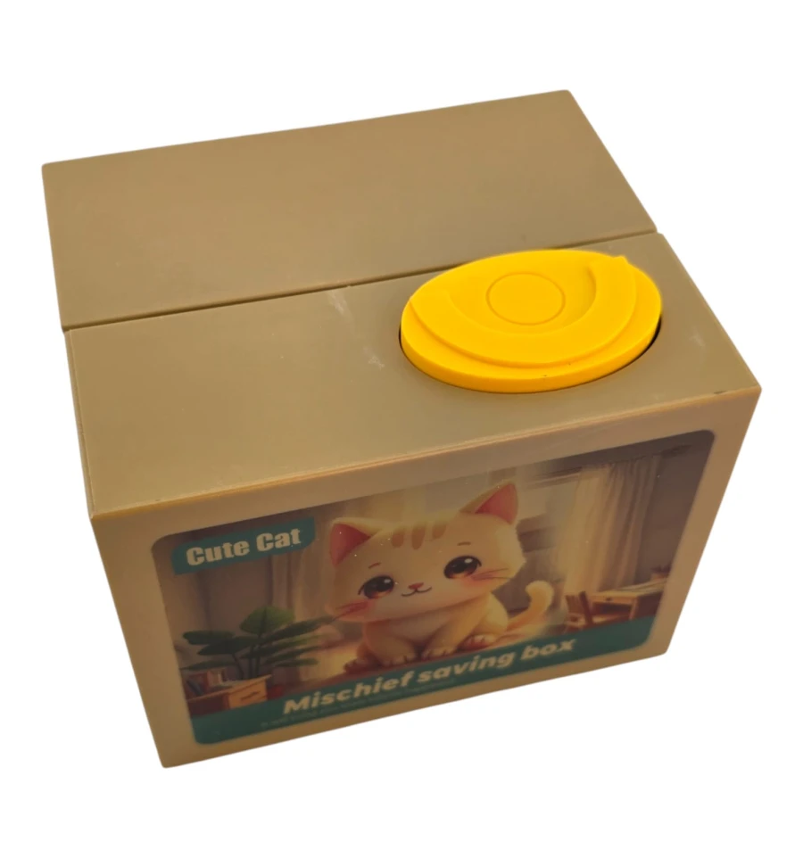 копилка, копилка кот, интерактивная копилка, автоматическая копилка, детская копилка, коробка для монет, coin box, cute cat, жёлтая кнопка, подарок ребёнку, копилка игрушка, копилка для монет