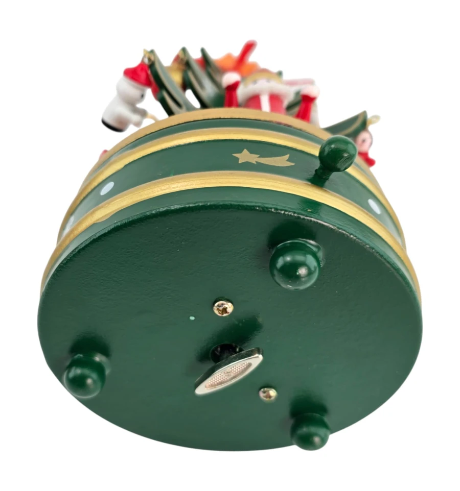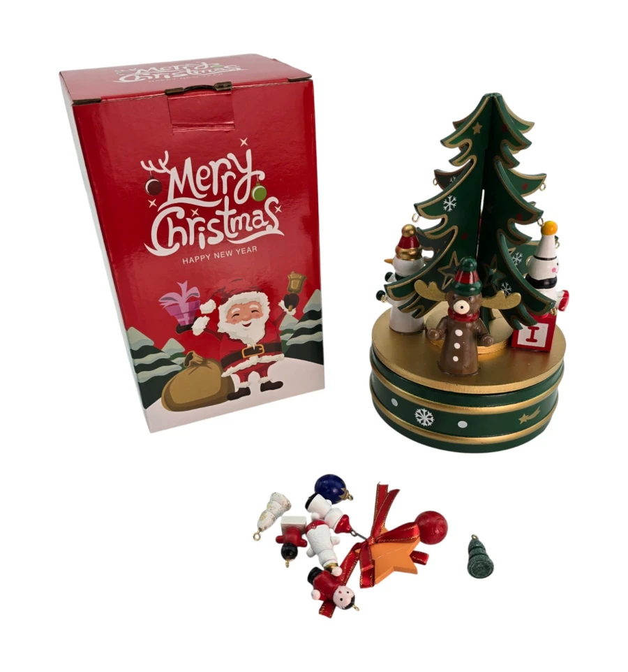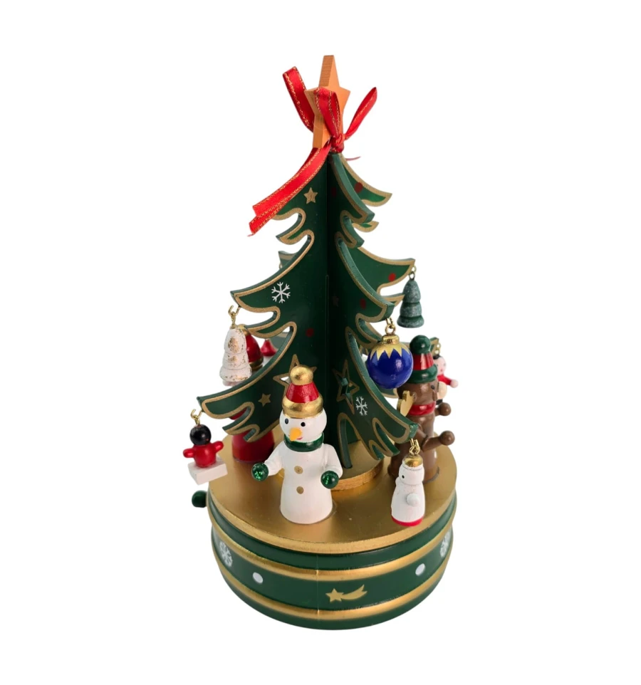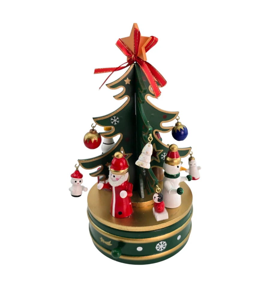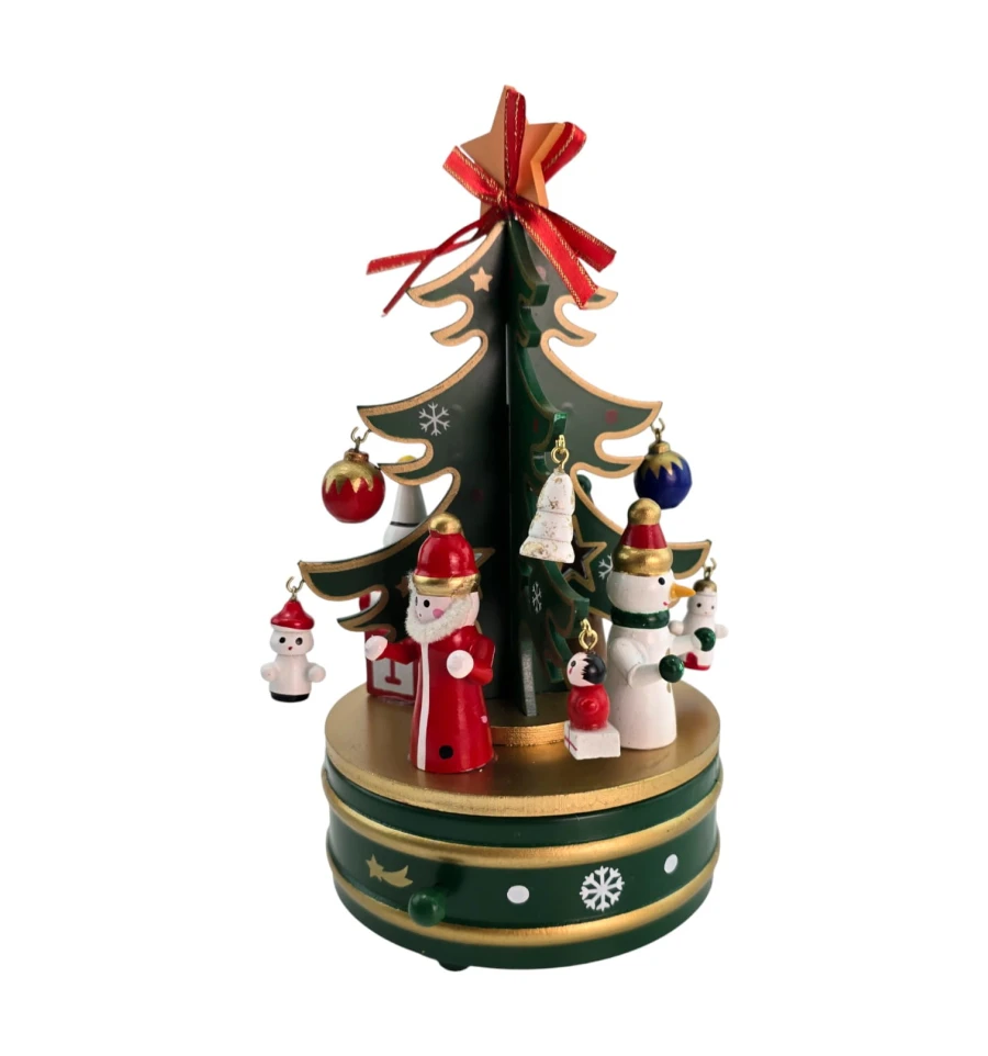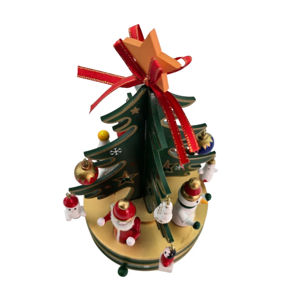 Настольная деревянная музыкальная ёлка - уютное новогоднее украшение для дома, офиса и витрин. На ветви подвешиваются мини-игрушки, а встроенный заводной механизм проигрывает мелодию без батареек. Устойчивая круглая подставка удобна для установки на столе, каминной полке или подоконнике. Отличный подарок детям и взрослым.