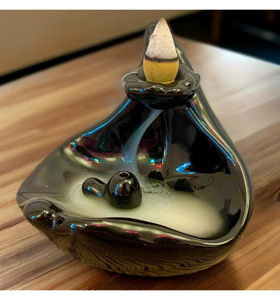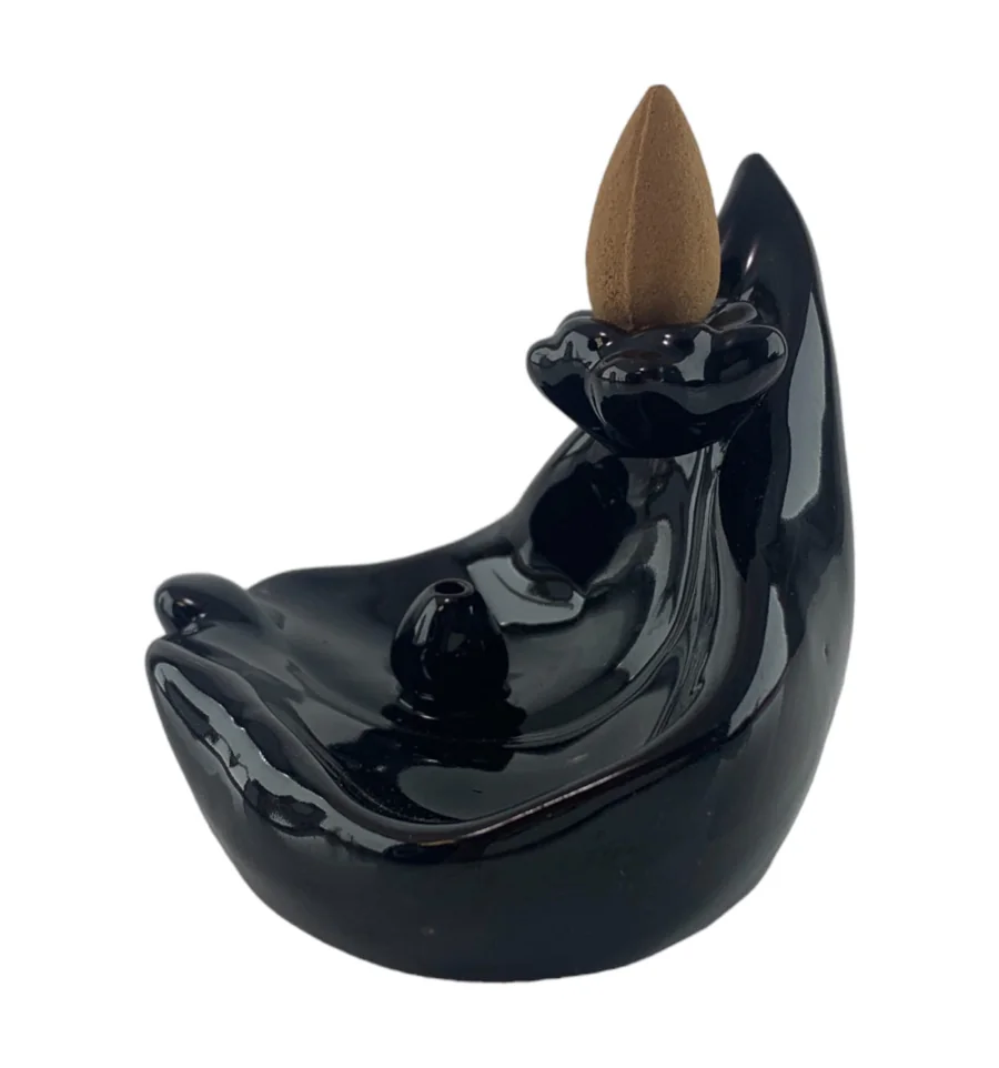 Подставка олицетворяет великолепный лотос — символ чистоты и духовного просветления. Ее черно-коричневая отделка придает ей изысканный и стильный вид, идеально вписываясь в интерьер любого помещения.