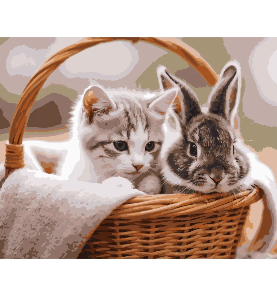 Картина по номерам Котенок с кроликом 40Х50 (VG031) купить в интернет магазине подарков ПраздникШоп
