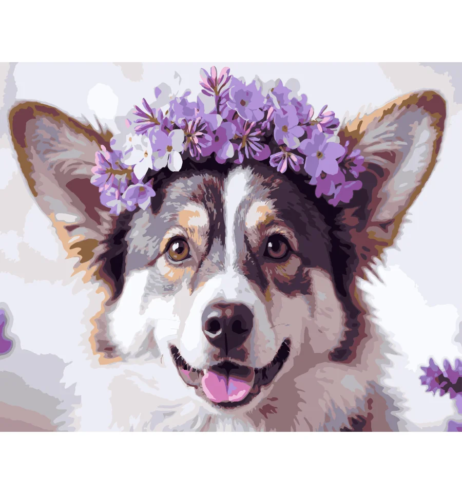 Картина по номерам Пес с цветами 40Х50 (VG045) купить в интернет магазине подарков ПраздникШоп