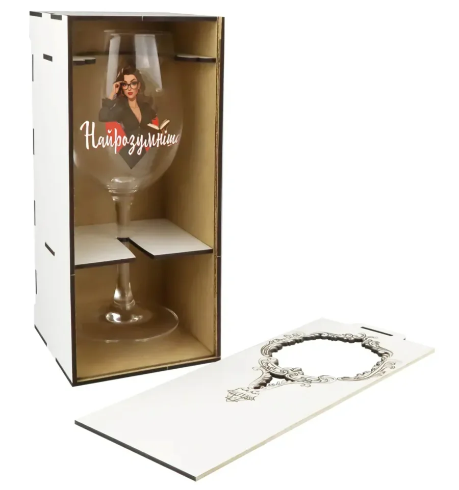 Стильный подарочный набор, сочетающий винный бокал 360 мл и прочную фанерную коробку. Отличное решение для подарка или личной коллекции.
