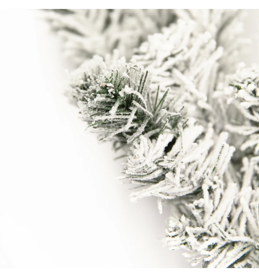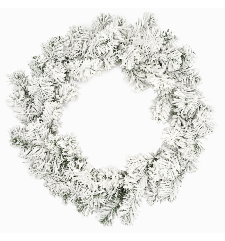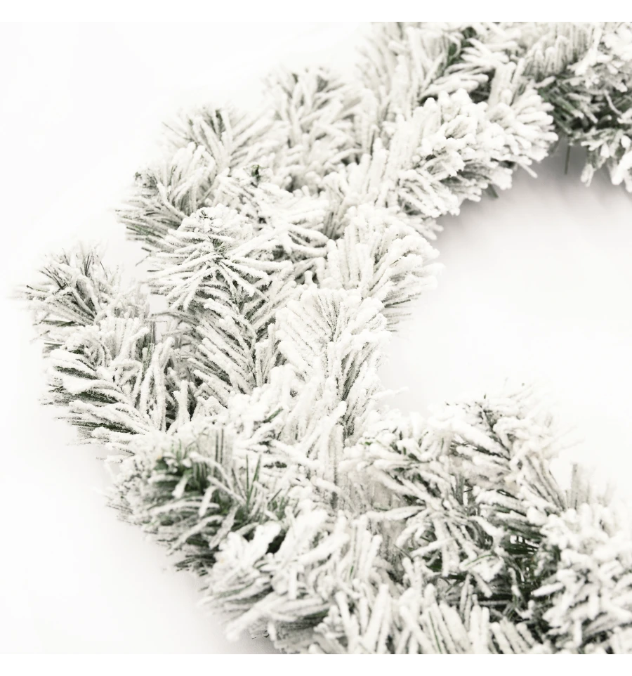 Красивый пышный заснеженный венок – традиционный подвесной декор для входных дверей дома и офиса в период новогодних праздников. Рождественский венок можно украшать зимними ягодами, веточками, пуансеттией, елочными шарами и другим декором. Все используемые материалы экологически чистые, имеют противопожарные свойства. Высокое качество материала позволяет изделию быть не только оригинальным и красивым, а еще и долговечным. Материал: ПВХ плёнка зелёного цвета, проволока. Ширина хвои — 6 см. Диаметр: 35 см.