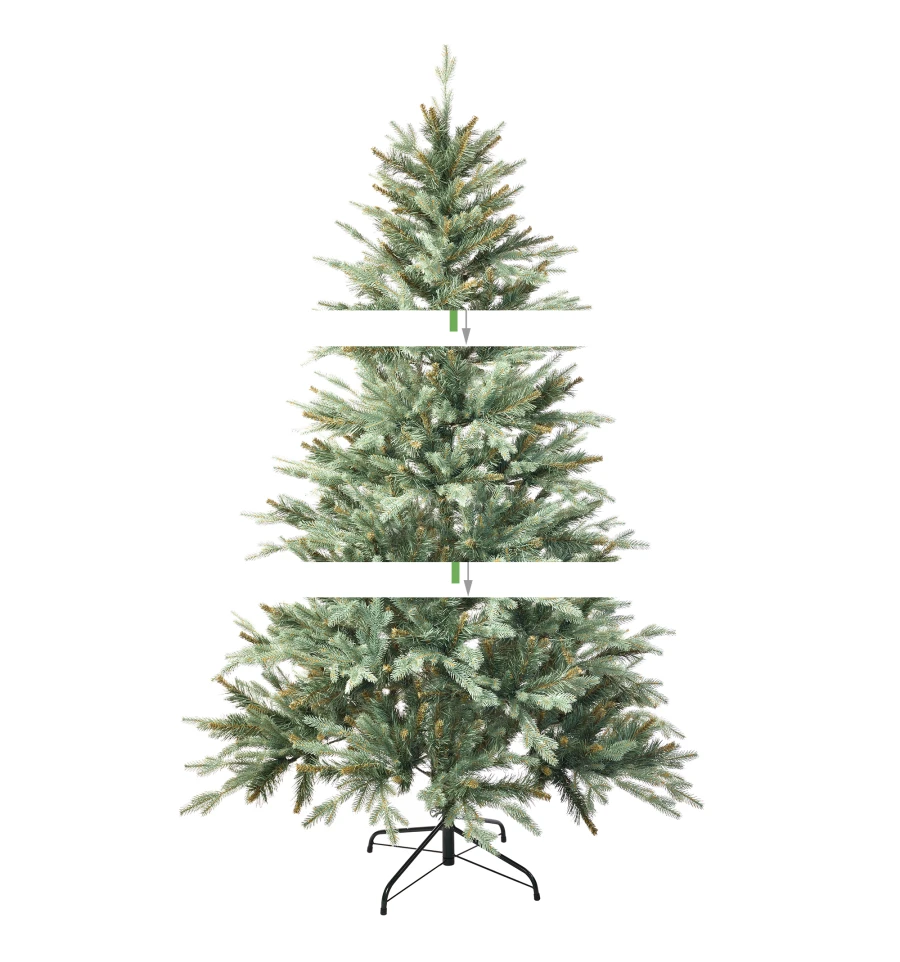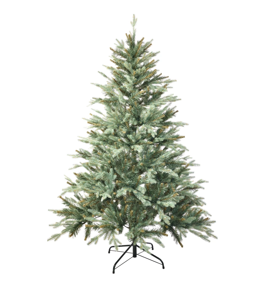 Искусственная ель с литыми ветками голубого цвета максимально подобна натуральному дереву. Все используемые материалы экологически чистые, имеют противопожарные свойства. Большим плюсом искусственной елки является её долговечность, а сборка конструкции не отнимет много времени. Красивое и пышное новогоднее дерево будет ежегодно наполнять дом радостью и благополучием в рождественский период. Материал: ПВХ пленка шириной 8,5 см; литые ветки; металл; проволока. Высота: 180 см. Диаметр нижнего ряда: 126 см. Ствол ели состоит из двух частей + верхушка. Подставка ели — это металлическая крестовина с болтами, закрепляющими ствол. Габариты: 1,80 м.