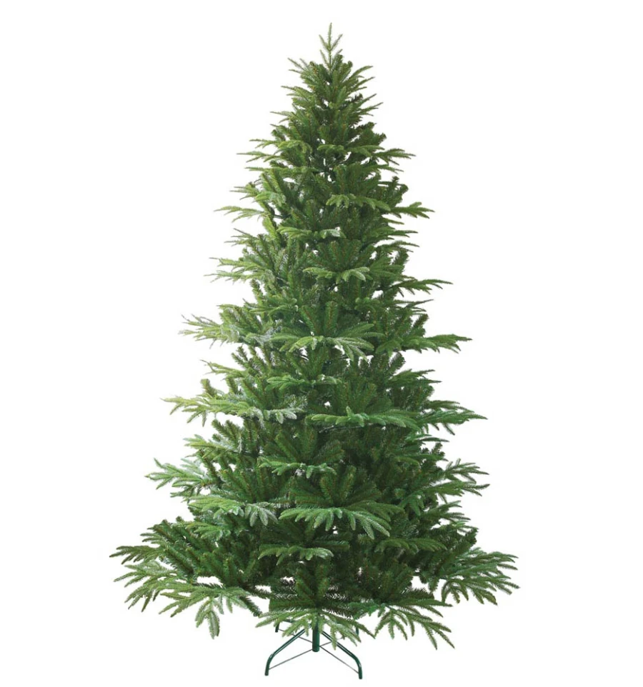 Искусственная ель с литыми ветками максимально подобна натуральному дереву. Все используемые материалы экологически чистые, имеют противопожарные свойства. Большим плюсом искусственной елки является её долговечность, а сборка конструкции не отнимет много времени. Красивое и пышное новогоднее дерево будет ежегодно наполнять дом радостью и благополучием в рождественский период. Материал: ПВХ пленка шириной 6 см; литые ветки; металл; проволока. Высота: 270 см. Диаметр нижнего ряда: 164 см. Ствол ели состоит из двух частей + верхушка. Подставка ели — это металлическая крестовина с болтами, закрепляющими ствол. Габариты: 2,70 м.