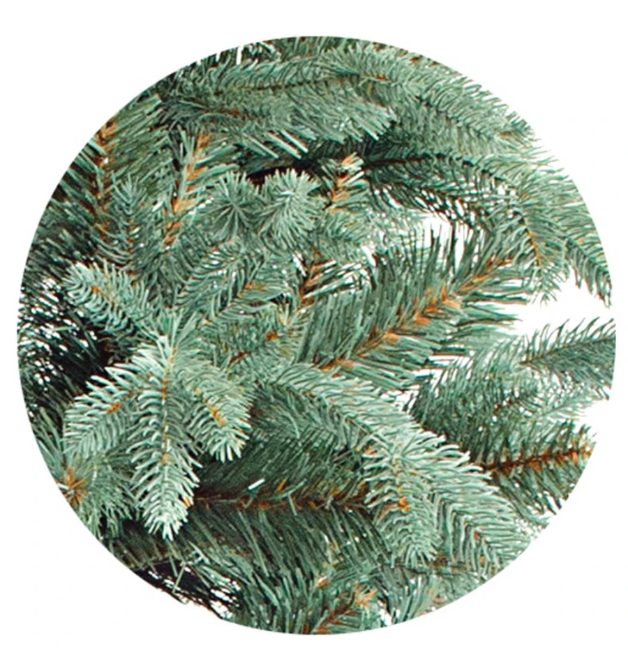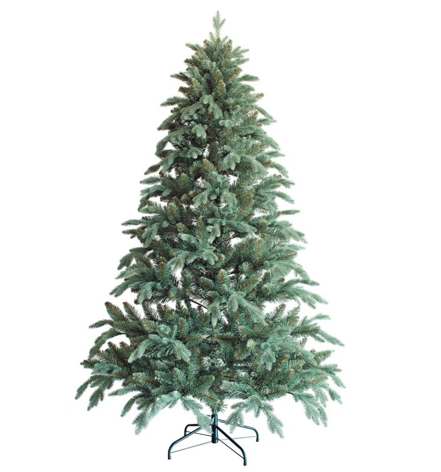 Искусственная ель с литыми ветками голубого цвета максимально подобна натуральному дереву. Все используемые материалы экологически чистые, имеют противопожарные свойства. Большим плюсом искусственной елки является её долговечность, а сборка конструкции не отнимет много времени. Красивое и пышное новогоднее дерево будет ежегодно наполнять дом радостью и благополучием в рождественский период. Материал: ПВХ пленка шириной 8,5 см; литые ветки; металл; проволока. Высота: 270 см. Диаметр нижнего ряда: 163 см. Ствол ели состоит из трех частей + верхушка. Подставка ели — это металлическая крестовина с болтами, закрепляющими ствол. Габариты: 2,70 м. Упаковка: составляющие части ели упаковываются в 1 ящик.
