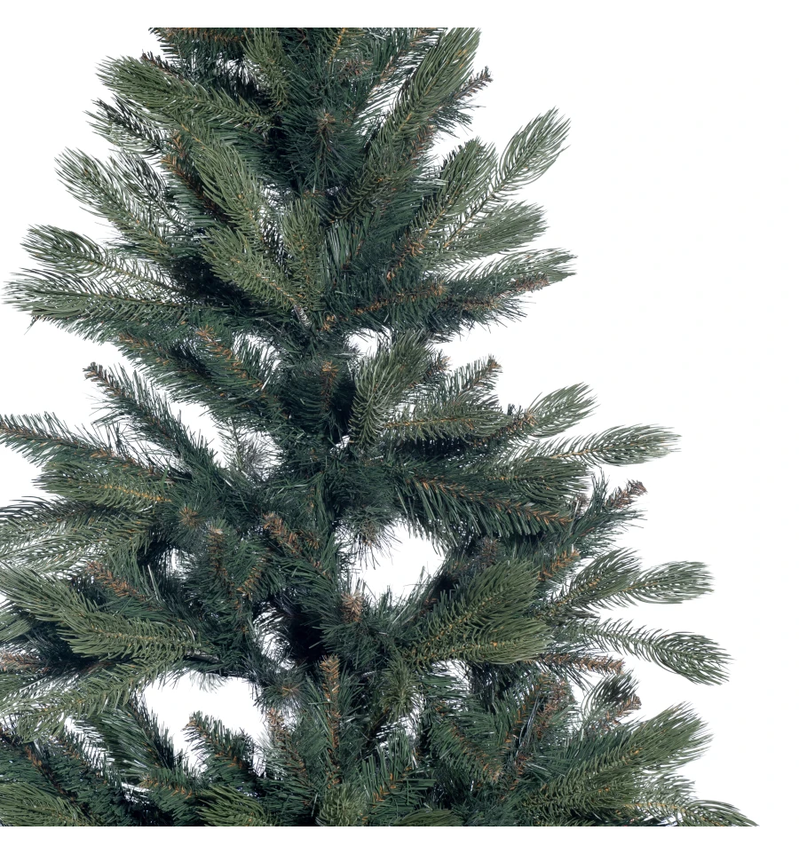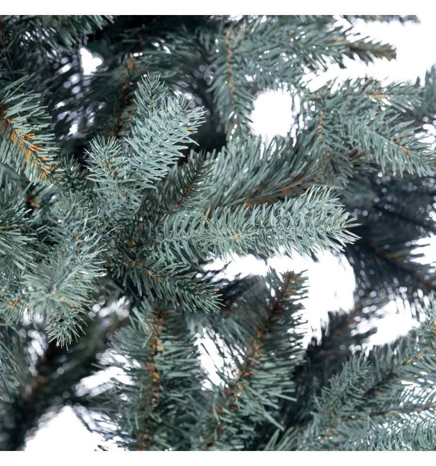 Искусственная ель с литыми ветками максимально подобна натуральному дереву. Все используемые материалы экологически чистые, имеют противопожарные свойства. Большим плюсом искусственной елки является её долговечность, а сборка конструкции не отнимет много времени. Красивое и пышное новогоднее дерево будет ежегодно наполнять дом радостью и благополучием в рождественский период. Материал: ПВХ пленка шириной 8,5 см; литые ветки; металл; проволока. Высота: 270 см. Диаметр нижнего ряда: 156 см. Ствол ели состоит из трех частей + верхушка. Подставка ели — это металлическая крестовина с болтами, закрепляющими ствол. Габариты: 2,70 м.
