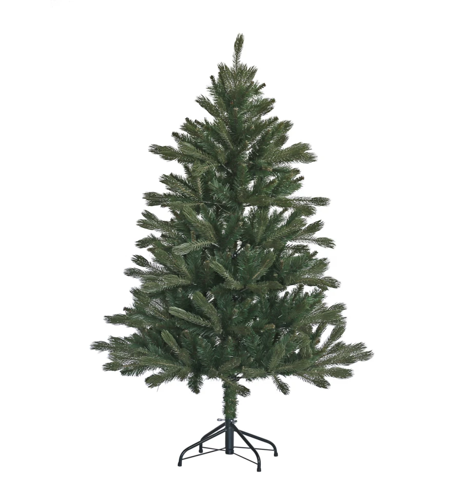 Искусственная ель с литыми ветками максимально подобна натуральному дереву. Все используемые материалы экологически чистые, имеют противопожарные свойства. Большим плюсом искусственной елки является её долговечность, а сборка конструкции не отнимет много времени. Красивое и пышное новогоднее дерево будет ежегодно наполнять дом радостью и благополучием в рождественский период. Материал: ПВХ пленка шириной 8,5 см; литые ветки; металл; проволока. Высота: 150 см. Диаметр нижнего ряда: 96 см. Ствол ели состоит из двух частей. Подставка ели — это металлическая крестовина с болтами, закрепляющими ствол. Габариты: 1,50 м.