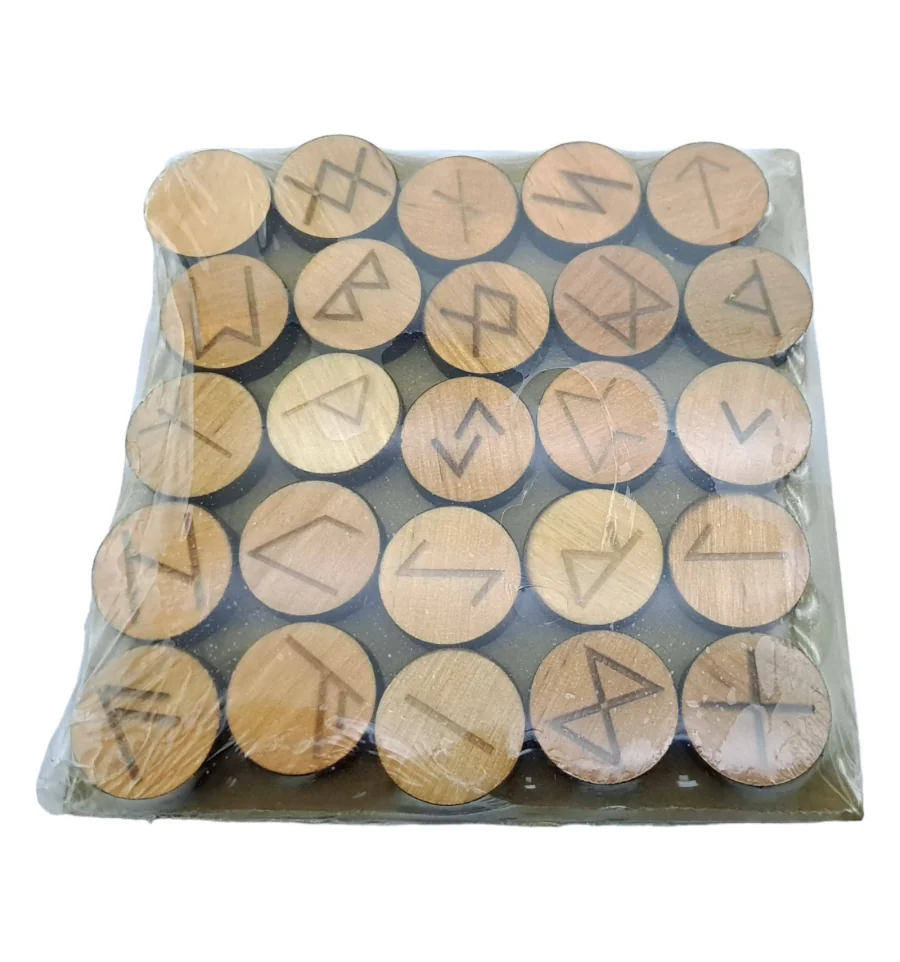 Размер руны d=23 мм. В наборе 25 рун и описание: значение рун и техника гадания. Руны из ольхи покрыты льняным маслом и пчелиным воском. Руны – это древняя скандинавская и славянская письменность. Каждая буква в скандинавском руническом алфавите имела своё название и своё значение. Сами скандинавы считали, что руны обладают мощной энергетикой и большой силой, поэтому использовали их для гадания и защиты.