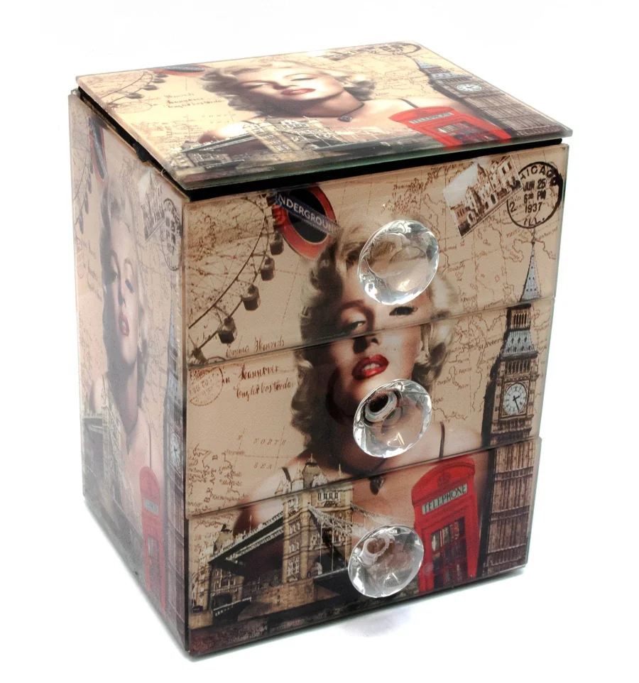 Шкатулка для украшений «Мерлин Монро»с зеркальцем стеклянная (15×12×9.5 см) купить в интернет магазине подарков ПраздникШоп