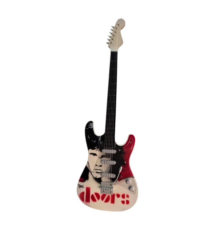 Декоративная мини-гитара в стиле The Doors — с портретом Джима Моррисона и легендарной красной надписью THE DOORS.