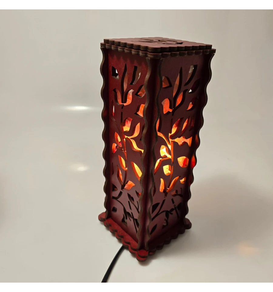 Этот уникальный светильник ручной работы сочетает в себе эстетику натурального дерева и целебные свойства розовой гималайской соли. Резные узоры в виде изящных листьев создают на стенах мягкую игру теней, превращая любую комнату в уютное пространство для отдыха.