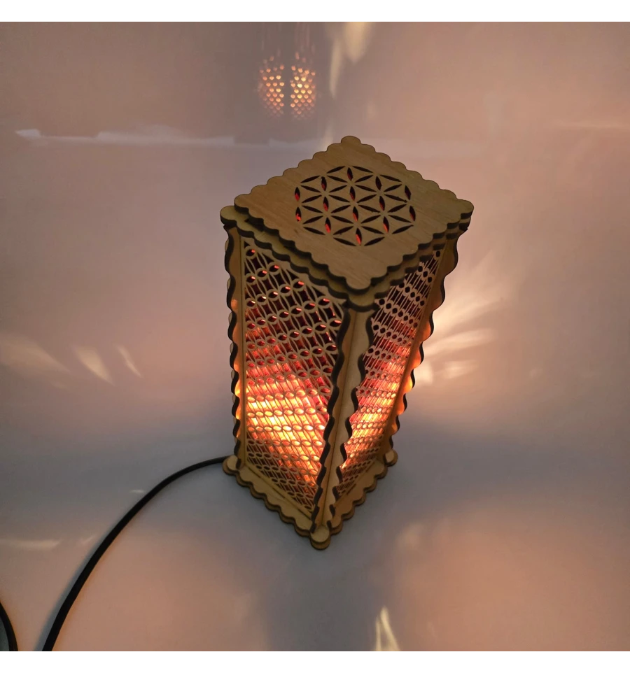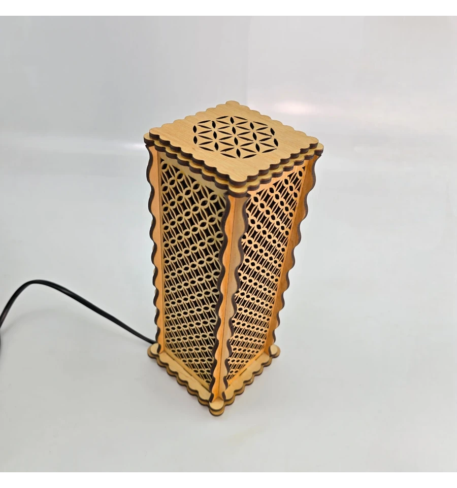 Сакральный дизайн: Узор «Цветок жизни» на верхней панели и изящная геометрическая резка на стенках создают магическую игру света и тени.