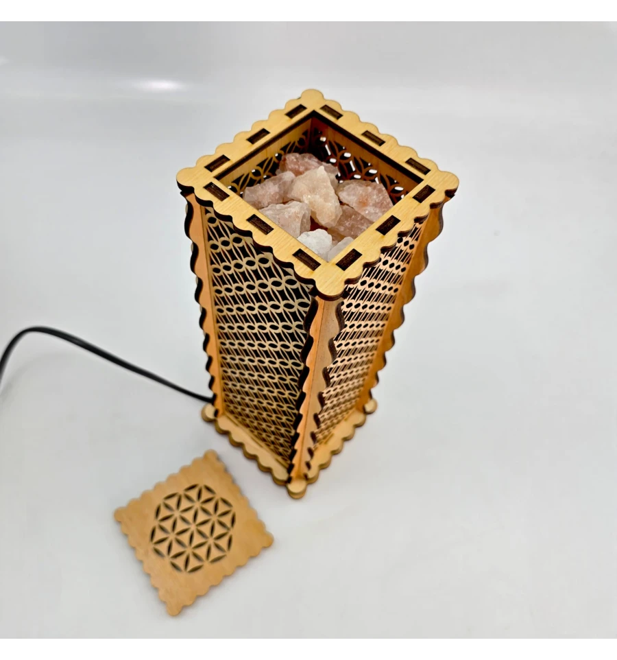 Соляной светильник из дерева «Цветок жизни» с диммером