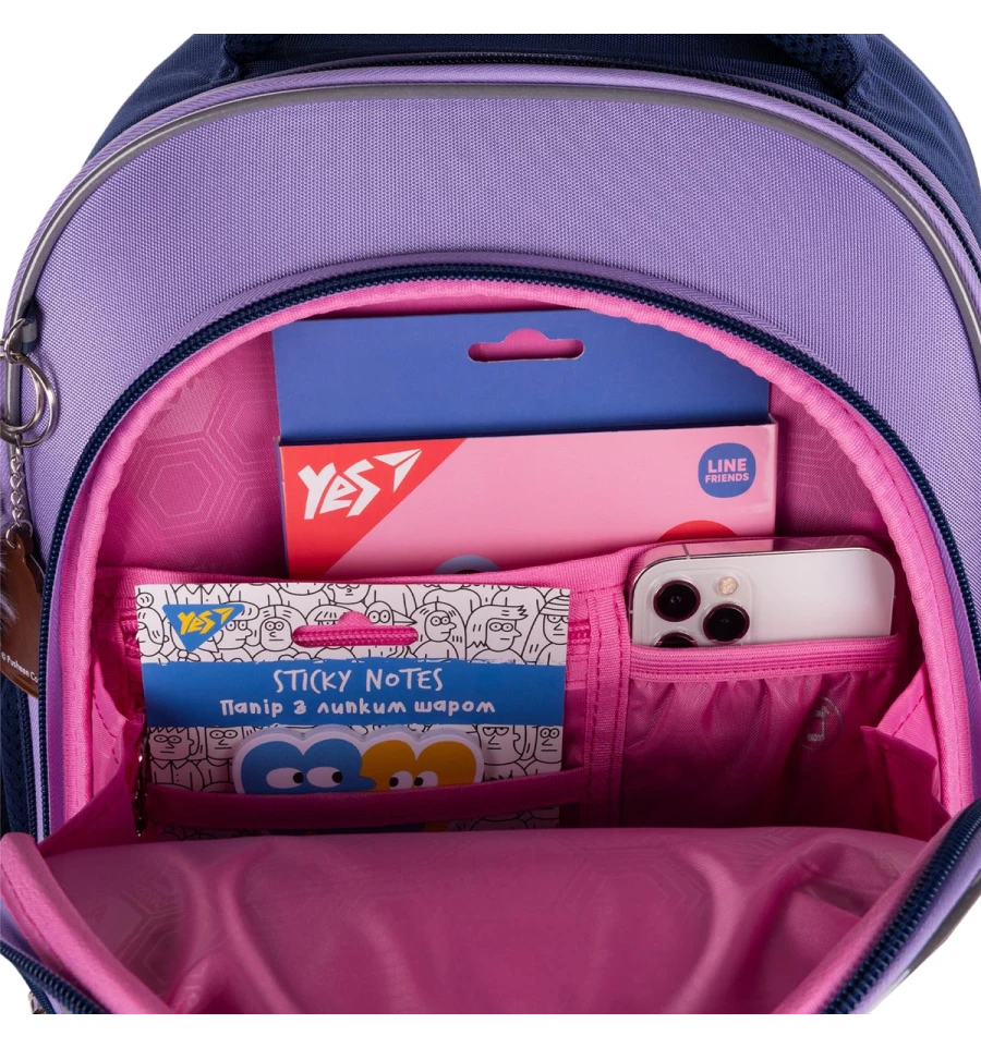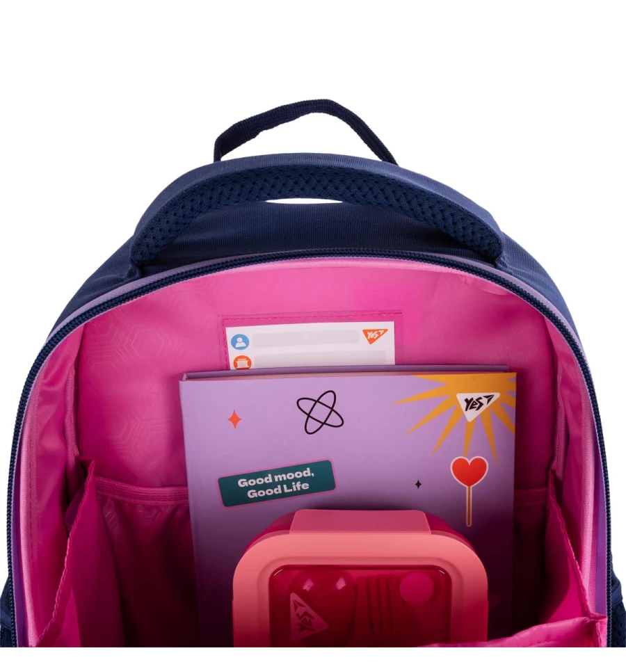 Удобные детали внутренней организации полукаркасного школьного рюкзака Yes S-109: