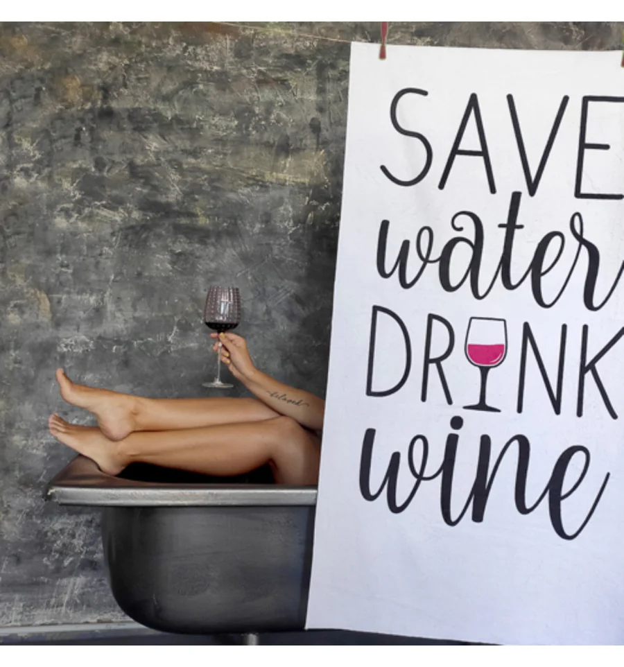 Полотенце пляжное большое с принтом Save water drink wine, 150х70 см купить в интернет магазине подарков ПраздникШоп