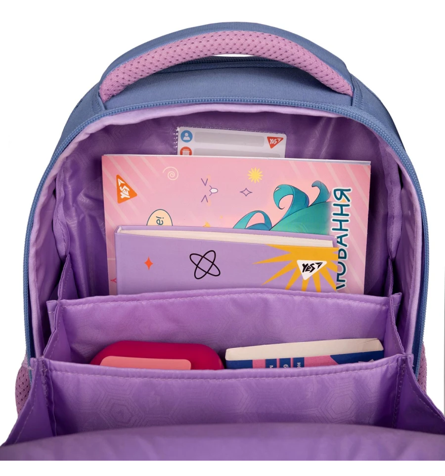 Удобные и практичные отделения позволяют размещать учебники или тетради формата A4 без риска их повреждения, а внутренний органайзер позволяет держать школьные принадлежности в порядке.