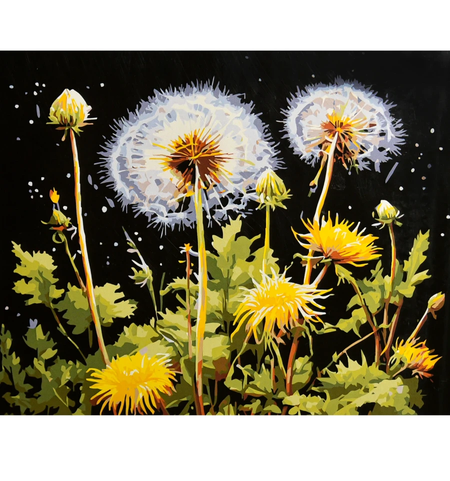 Картина по номерам Легкость одуванчиков на черном фоне 40х50 (AH1322) купить в интернет магазине подарков ПраздникШоп