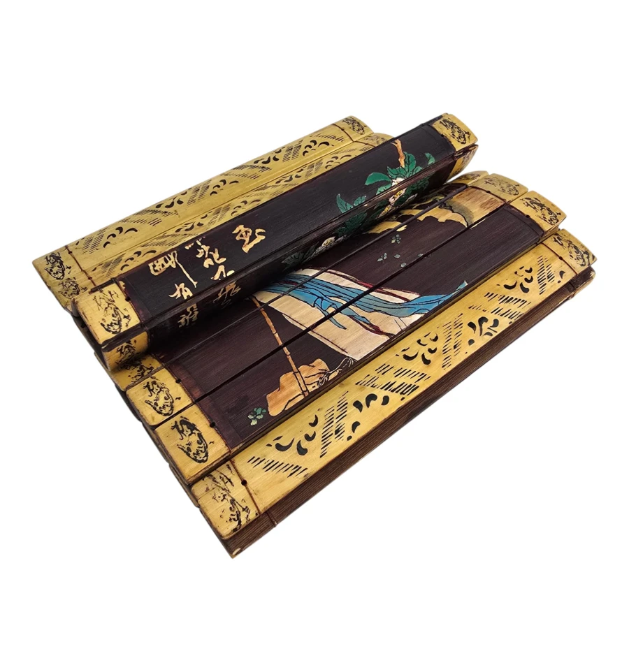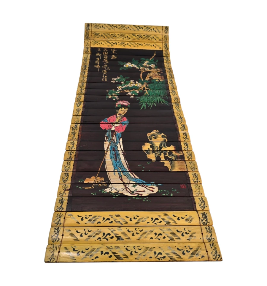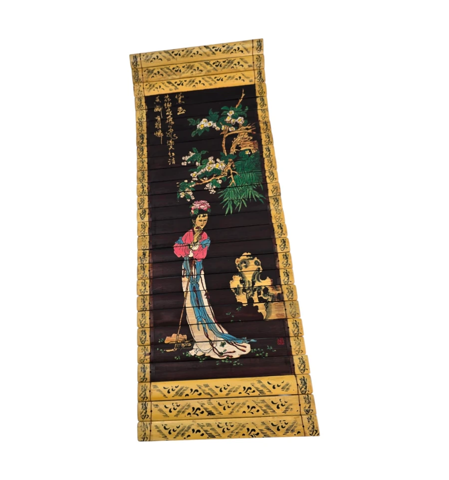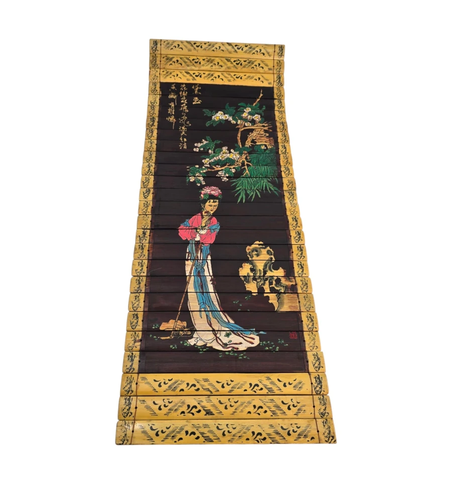 Изысканная декоративная картина-свиток, изготовленная из натуральных бамбуковых планок в традиционном китайском стиле.