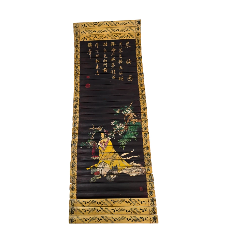 бамбуковая картина, китайская картина, картина свиток, утренний наряд красавицы, 晨妆图, китайский декор, восточный декор, азиатский интерьер, бамбук декор, ручная работа Китай, китайская каллиграфия, традиционная китайская живопись, декоративная картина, подарок, восточный стиль, китайская красавица