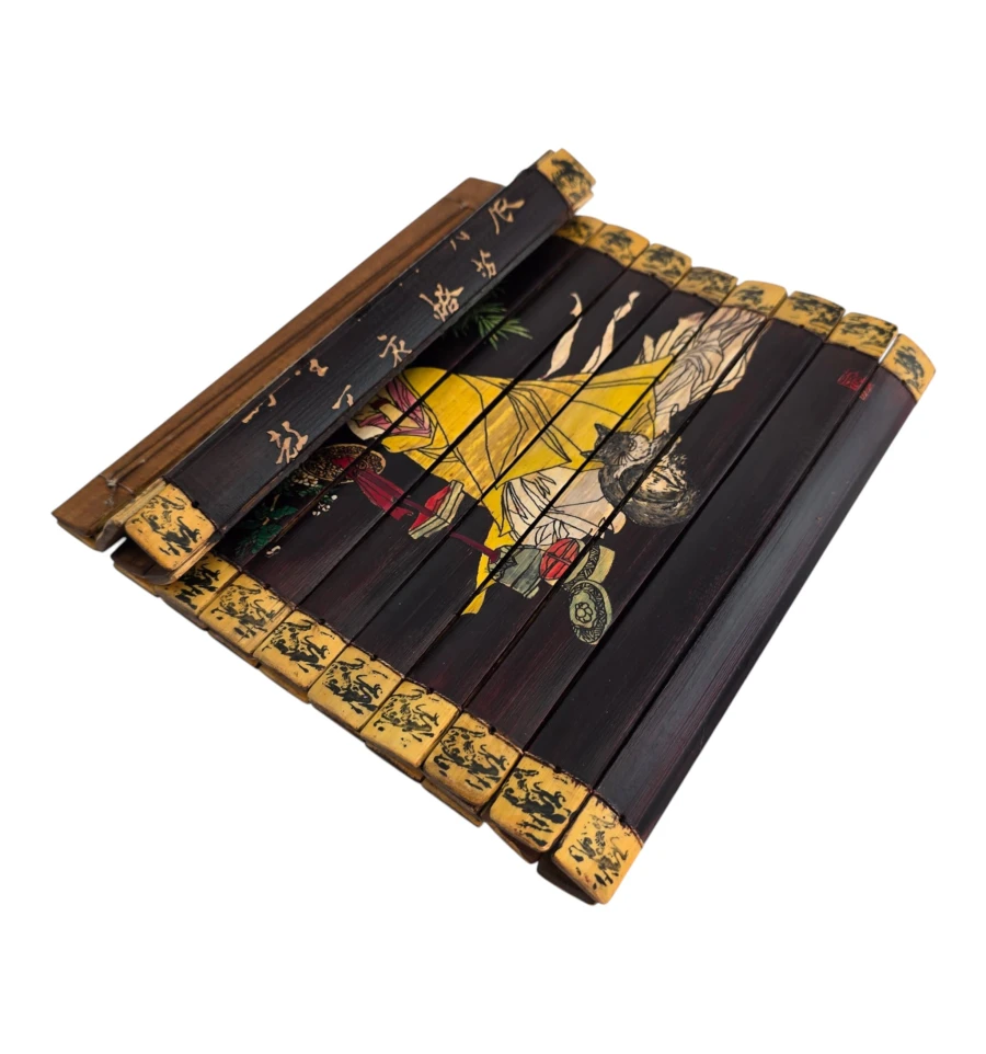 Изысканная декоративная картина-свиток, изготовленная из натуральных бамбуковых планок в традиционном китайском стиле.