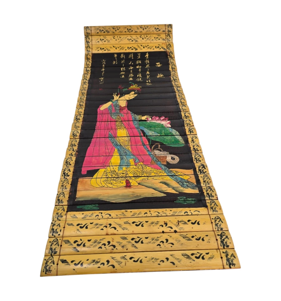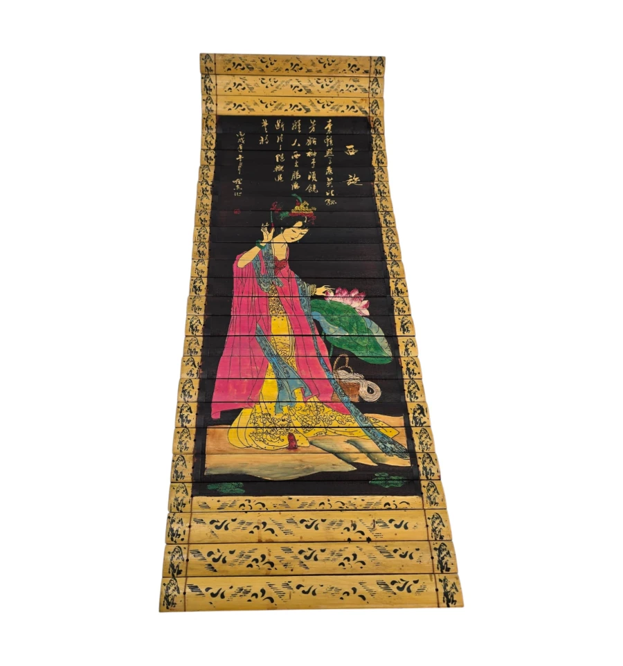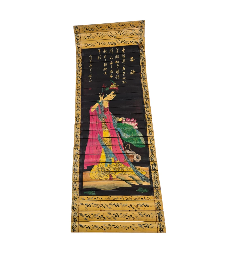 бамбуковая картина, китайская картина, картина свиток, Си Ши, 西施, четыре красавицы, китайский декор, восточный декор, азиатский интерьер, бамбук декор, ручная работа Китай, китайская каллиграфия, традиционная китайская живопись, декоративная картина, подарок, восточный стиль, китайская красавица, лотос