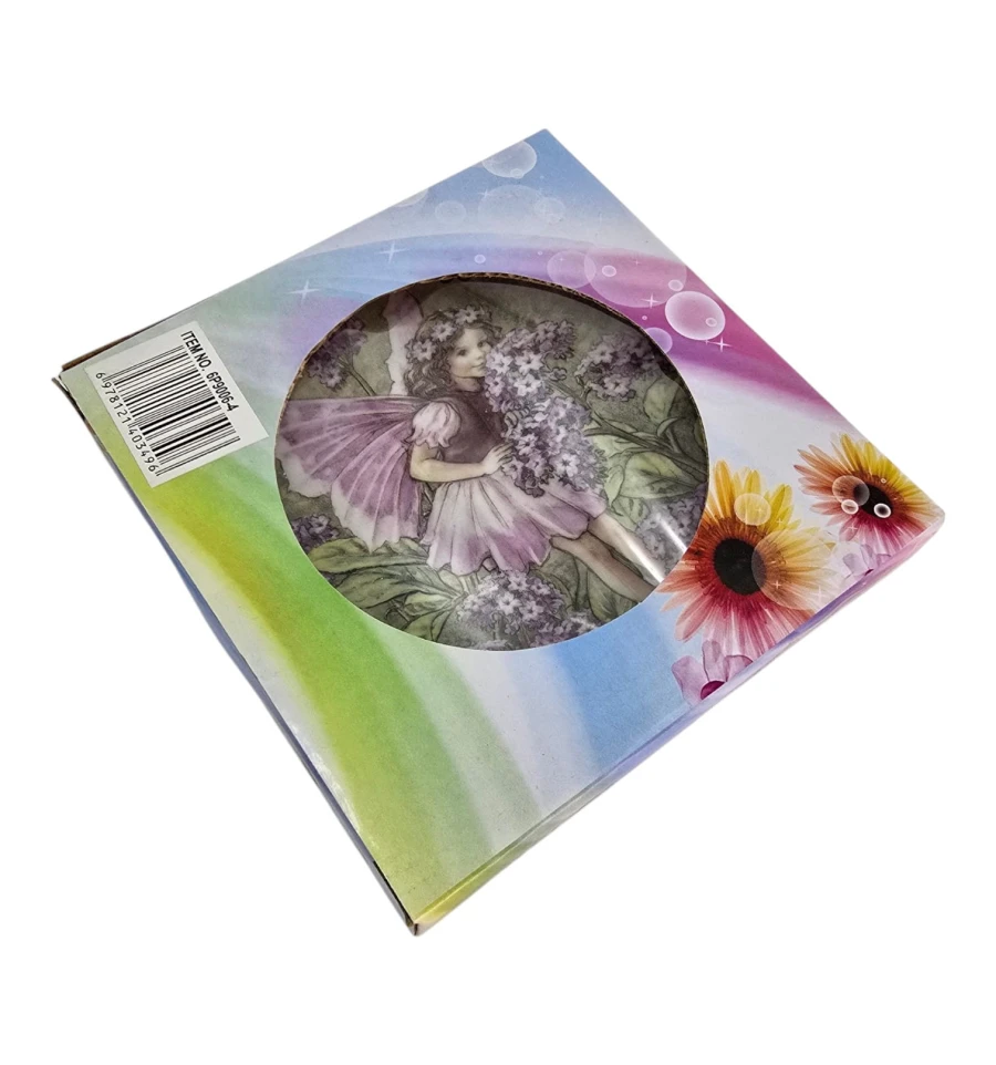 Стильная декоративная керамическая тарелка с очаровательным изображением феи среди сиреневых цветов. Это изысканный элемент декора в романтическом, фэнтезийном или винтажном стиле.
