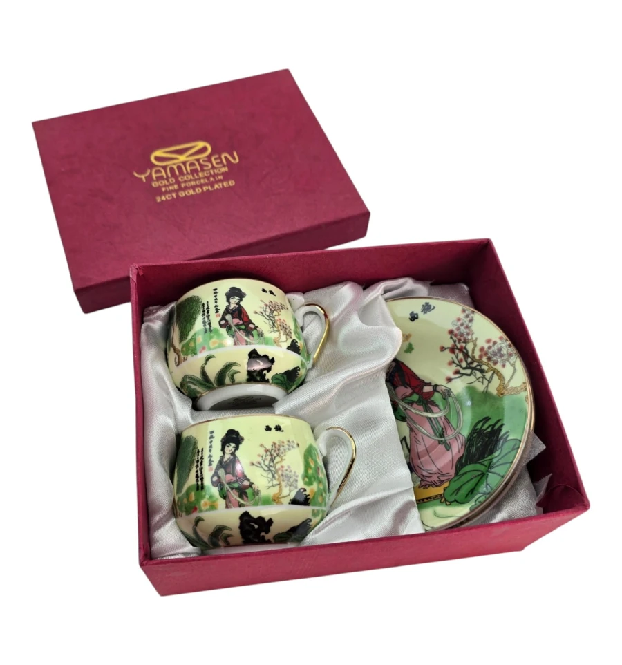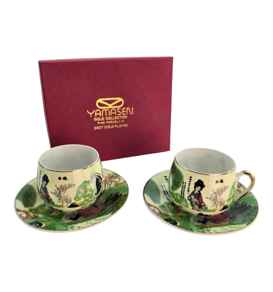 Подарочный набор из двух фарфоровых чашек с блюдцами от Yamasen Gold Collection.