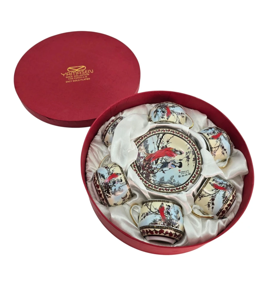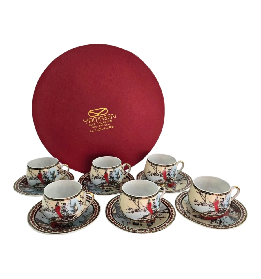 Подарочный набор из шести фарфоровых чашек с блюдцами от Yamasen Gold Collection.