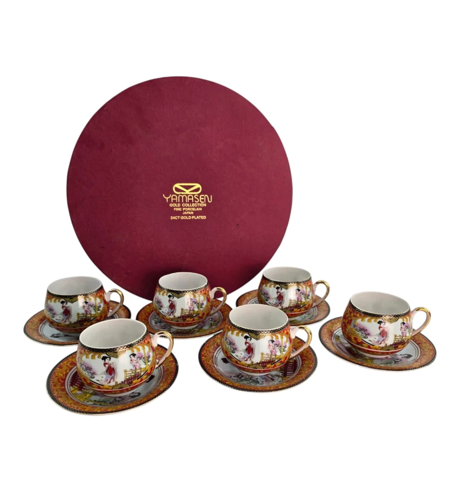 Подарочный набор из шести фарфоровых чашек с блюдцами от Yamasen Gold Collection.