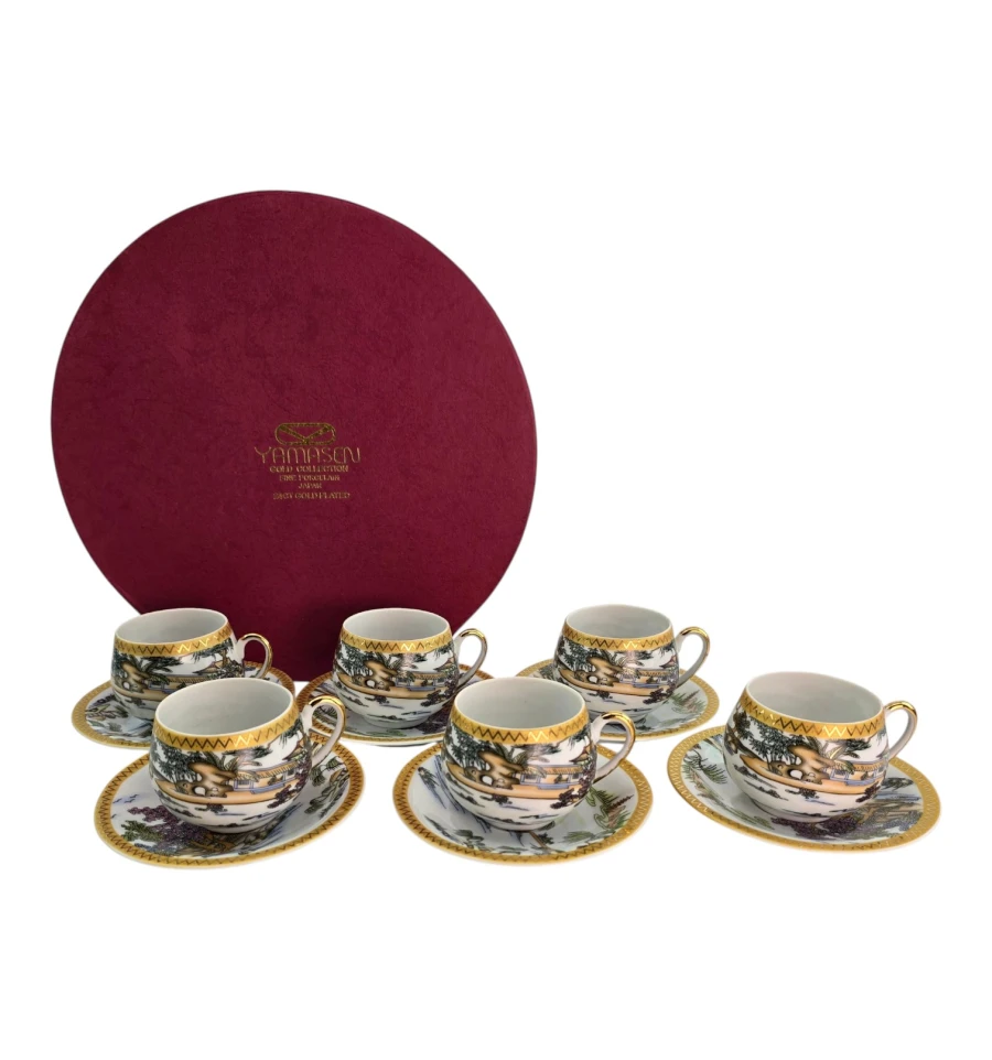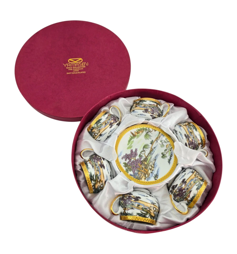 Подарочный набор из шести фарфоровых чашек с блюдцами от Yamasen Gold Collection.