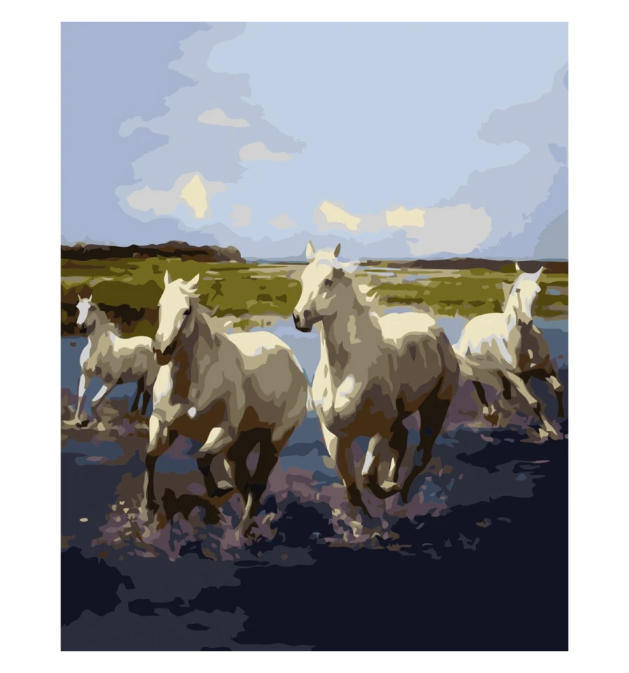 Картина по номерам ПРЕМИУМ Четверка лошадей с лаком размером 40х50 см VA-0362