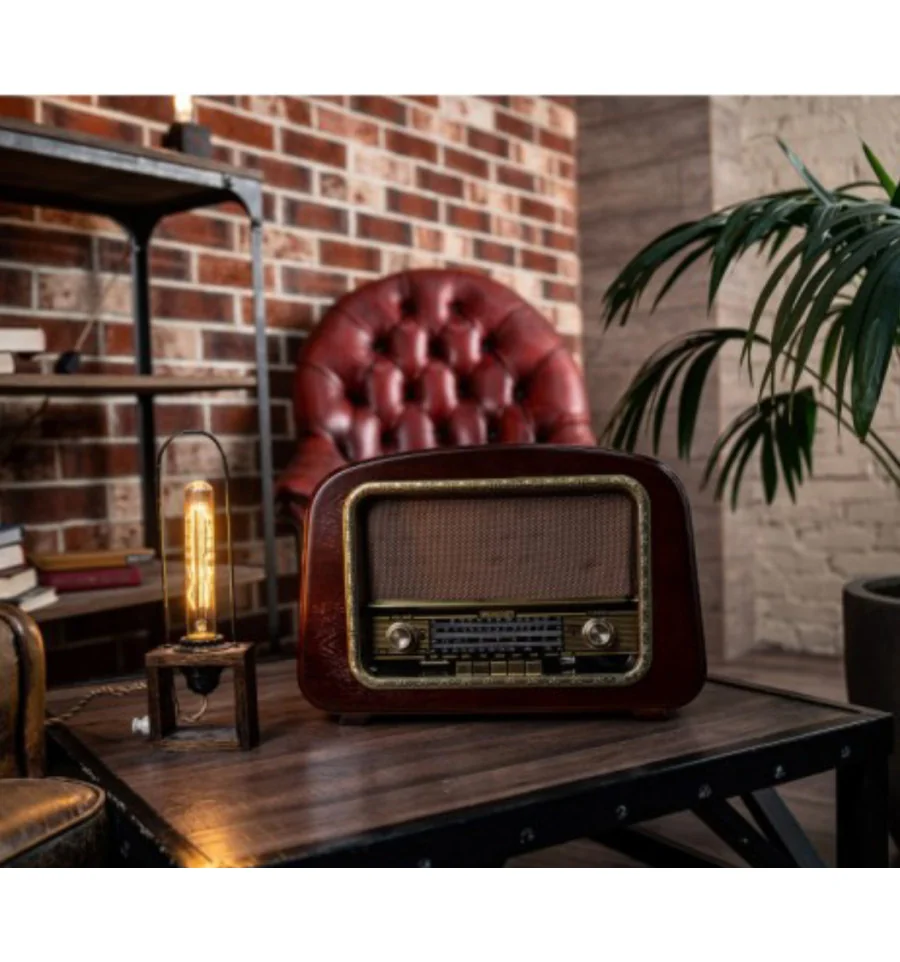 Стильный радиоприемник перенесёт Вас в эпоху 20 века. Времена, когда каждый предмет создавался искусными мастерами и по прошествии времени приобретал свою историю. Корпус радиоприемника изготовлен из натурального дерева. Динамик обтянут специальной акустической тканью, а великолепное качество сборки приемника подтверждает надежную работу на многие годы. Такой приемник сочетает в себе функции радио и проигрывателя. С помощью антенны легко настроить радиочастоту. Современные комплектующие и качественные материалы радиоприемника позволят насладиться магическим шармом и изысканностью ушедшего поколения.