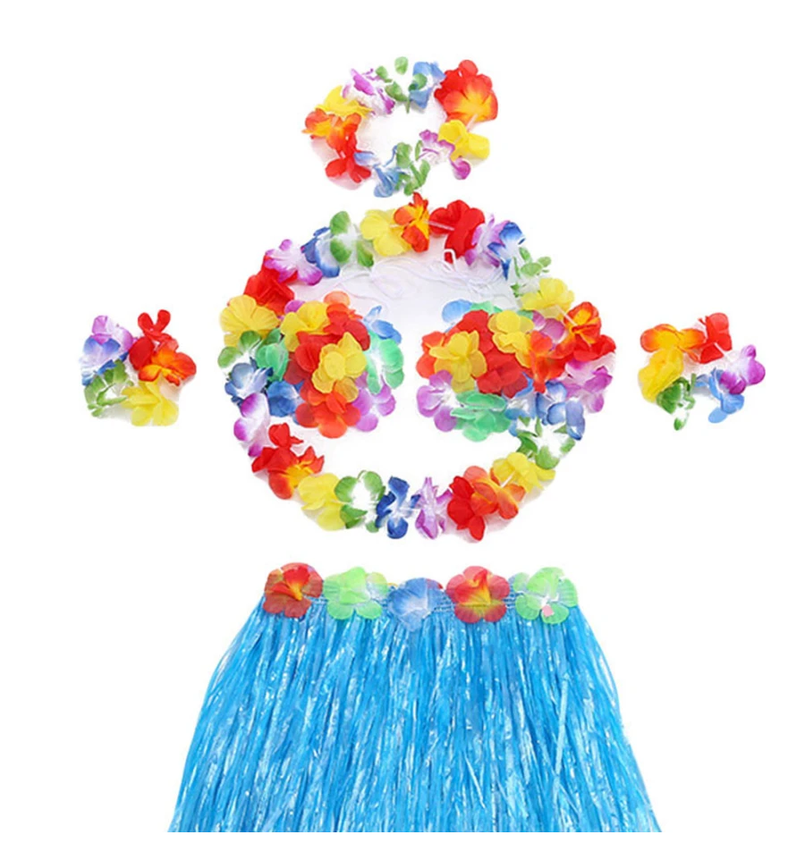 Додаткові характеристики | спідниця на резинці з липучкою довжина - 75см, гумка на талії тягнеться від 60 до 100см, ліф пластиковий, чаша - 12х12х5см вкрита квітами, віночок на голову, лея на шию завдовжки - 50 см, браслет - 2 шт |