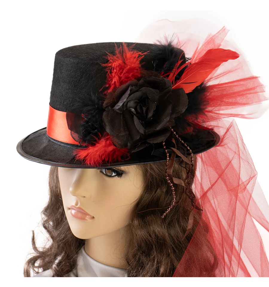 Цікавлять карнавальні капелюхи для вечірки оптом та по дропшиппінгу? Бажаєте розширити свій асортимент товарів? Тоді інтернет магазин PrazdnikShop представляє Капелюх Стімпанк Леді Роузвуд 13299 (червоний). Капелюх Стімпанк Леді Роузвуд 13299 (червоний) допоможе створити цікавий образ стилі стимпанк (Steampunk), косплей, паропанк, готик на корпоратив, фотосесію, весілля або тематичну вечірку. Стане незамінним елементом образу на святі, карнавалі або костюмованій вечірці для любителя наукової фантастики, різного прояву стимпанку у фільмах іграх та книгах та ретроффутуризму. Капелюх Стімпанк Леді Роузвуд 13299 (червоний) стане прекрасним доповненням Вашого образу на святі, карнавалі або тематичній вечірці. Родзинкою даного капелюха є яскраво червона атласна стрічка з квітами на підставі капелюха і довжина яскрава фата в тон до стрічки. Також можна підібрати Окуляри Гогли та інші аксесуари, у стилі Стімпанк за вигідними цінами, які суттєво спростять пошук деталей для складання образу.