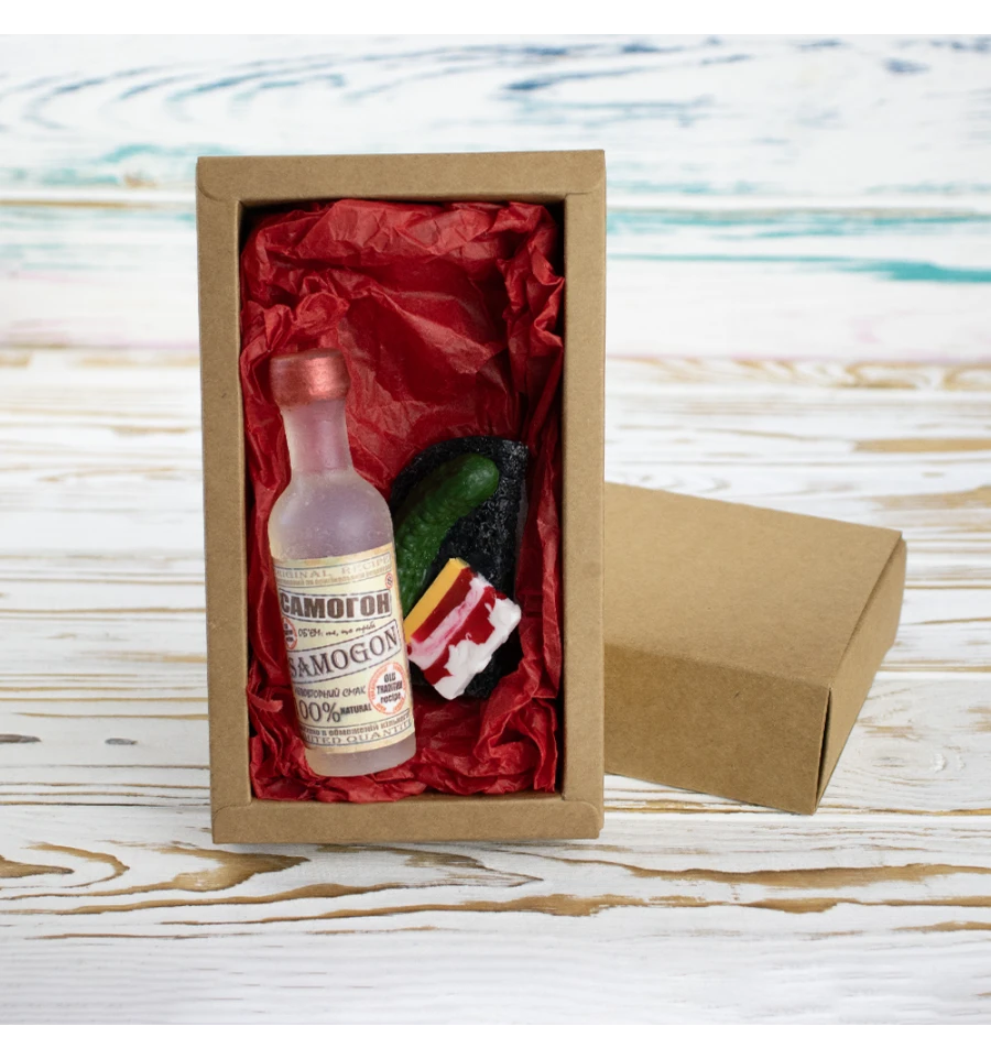 Будемо в подарунковій упаковці - це гордість нашої власної майстерні. Ми створили його для тих, хто цінує національний колорит та оригінальні подарунки з душею. У комплект входять два неймовірно реалістичні елементи. Апетитний шматочок сала з прошарками, що імітують м'ясні прожилки, і шкіркою - виглядає настільки натурально, що його легко сплутати зі справжнім делікатесом. І пляшечка самогону - деталізована мініатюра, яка доповнює святкову композицію. Чому варто вибрати Подарунковий набір із мила? Набір з мила Будьмо - універсальний подарунок, який стане родзинкою в будь-якій компанії. Ідеальний привід посміятися та підняти настрій коханому куму чи другу. Як душевний сувенір татові чи дідусеві, що підкреслює традиції. Як оригінальний український сувенір іноземним гостям, який не тільки гарний, а й корисний. Щоб додати трохи неформального тепла до робочих буднів колегам на свято. Ми упаковуємо набір у презентабельну подарункову коробочку, яка підкреслює його статус та захищає мило під час транспортування. Вибираючи Подарунковий набір з мила Будьмо, ви даруєте якість, щирі емоції та частинку нашої майстерності. Нехай кожен похід у ванну починається з усмішки та гарного настрою! Будьмо!