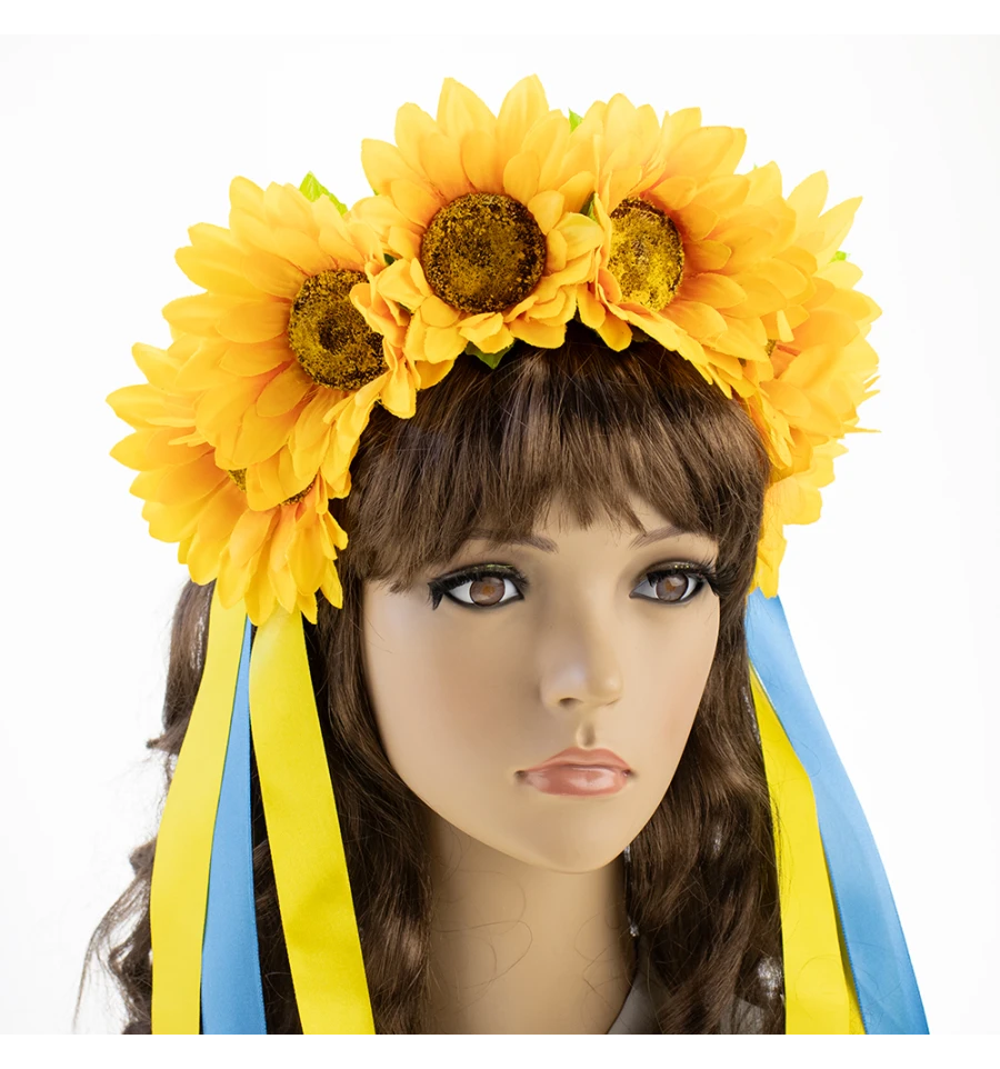 Український віночок на обідку зі стрічками Український віночок зі стрічками на обідку Соломія 12224 (жовтий) – виконаний зі штучних квітів соняшника та атласних стрічок яскраво-жовтого та блакитного кольору. Український вінок із квітів і стане чудовим доповненням українського образу для фотосесії. Виготовлений на основі обідка для волосся, тому добре тримає форму та щільно тримається на голові. Виготовлення Український віночок на обідку зі стрічками Український віночок зі стрічками на обідку Соломія 12224 (жовтий) виробляється нашими майстрами на замовлення в строк від 1-го до 3-х робочих днів. Будьте у тренді – доповніть свій образ гарним аксесуаром, який Ви можете підібрати на нашому сайті. Пишний український вінок чудово підійде для фотосесії, дефіле, будь-якого виступу на сцені, етнофестивалю, зйомок фільму чи кліпу. Компанія PrazdnikShop залишає за собою право вносити зміни до технічних характеристик, кольору, комплектації та конструкції, що не погіршують експлуатаційних характеристик виробів, без попереднього повідомлення. Зображення та колір представленого товару можуть незначно відрізнятися від оригіналу продукції, залежно від роздільної здатності та налаштувань монітора, а також умов освітлення під час зйомки. Відкрийте для себе багатий вибір незвичайних головних уборів для будь-якої події у нашому асортименті! Пропонуємо вам придбати чарівний Український віночок на обідку зі стрічками Український віночок зі стрічками на обідку Соломія 12224 (жовтий) в інтернет-магазині PrazdnikShop та додати колориту вашому образу в етнічному стилі. Слідкуйте за трендами та підберіть ідеальний аксесуар на нашому сайті!