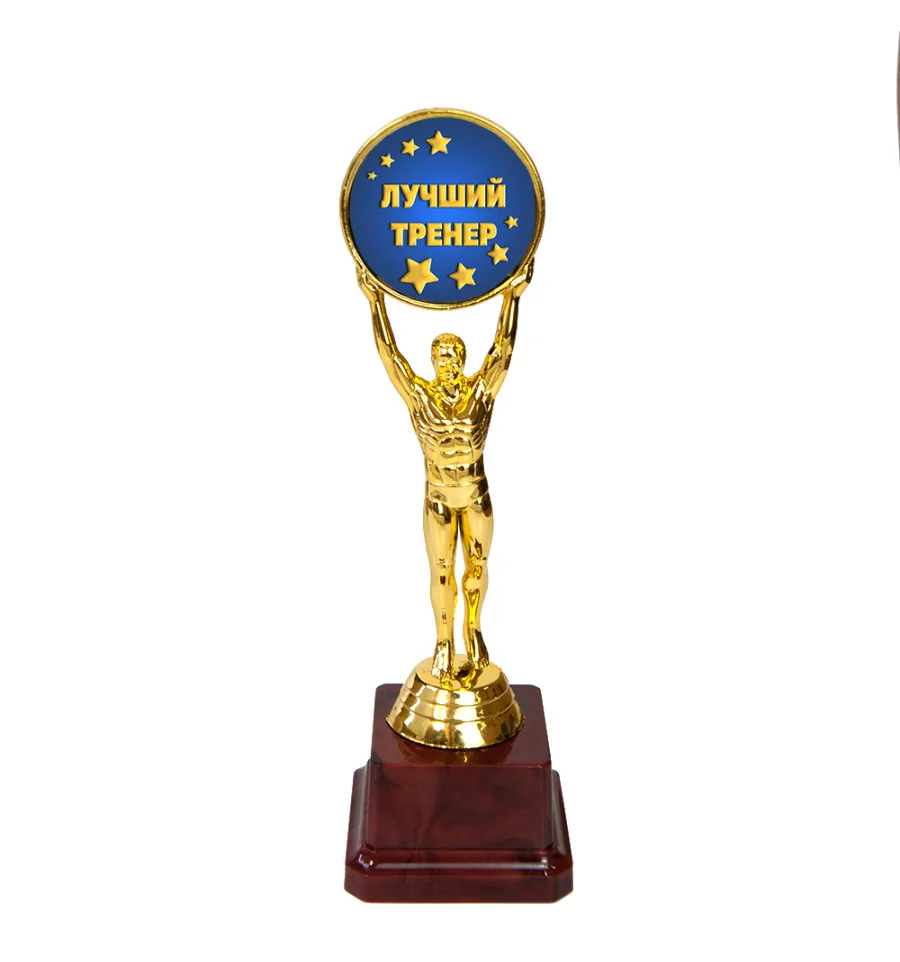 Статуетка 57115 Людина року Лучший тренер – відмінна та оригінальна нагорода, її можна вручити своєму тренеру. Подарунок символічний і незвичайний, який говорить як дорогий для Вас вітається! Статуетка виконана у вигляді 3D композиції людини з медаллю. Фігурка виконана золотим кольором на класичному бордовому п'єдесталі. Статуетка упаковується в індивідуальний тубус з прозорого пластику. Унікальне пакування розроблене компанією PrazdnikShop. На бордовому п'єдесталі статуетки може бути присутня імітація мармурових розлучень. Оригінальні нагороди та призи в наявності та на замовлення – відмінна ціна. Великий вибір кубків, медалей та нагородних статуеток для будь-якого приводу в інтернет магазині PrazdnikShop.