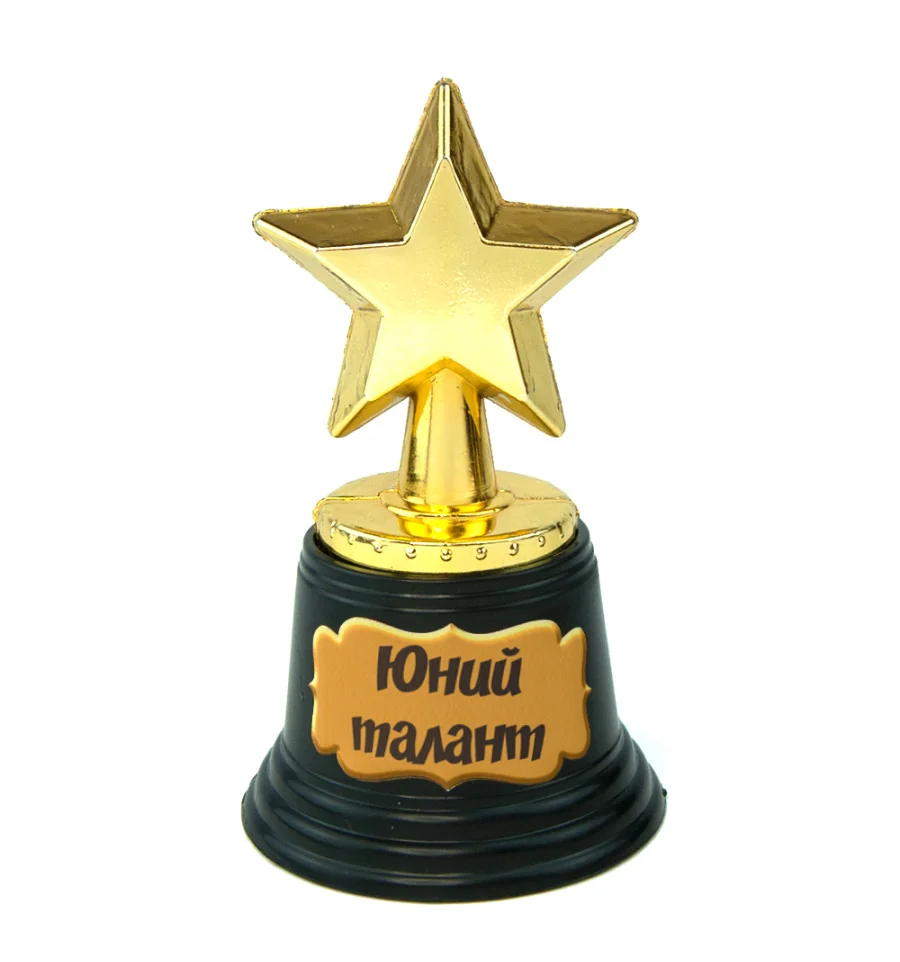Статуетка 570974 Зірочка Юний талант із написом українською мовою: Юний талант – чудовий подарунок для учнів початкової школи чи дитячого садка. Така статуетка буде актуальною для вручення під час підбиття підсумків навчання за семестр, конкурсів або іншого заходу в освітньому закладі. Статуетка виконана у вигляді зірки з щільного пластику з покриттям під золото та стійкою підставкою, такий сувенір стане чудовою прикрасою інтер'єру та подарунком, що запам'ятовується. На статуетках Зірочка можуть бути виробничі отвори, що виникають у процесі формування або лиття. Отвори малі та знаходяться в тих місцях, де не впливають на загальний вигляд виробу. Фото прикладу можна переглянути у галереї. Статуетка виготовляється на замовлення. Обміну та поверненню не підлягає. Наша компанія пропонує великий вибір статуеток і до деяких моделей можливе виготовлення індивідуального друку напису на табличці для п'єдесталу Кубків та Статуеток (колір тексту – чорний, фон – золотий) або на жетоні червоного зеленого чи синього кольору. Можливість виготовлення індивідуального друку необхідно додатково уточнювати у менеджера. Наш магазин пропонує товари оптом та для дропшиперів.