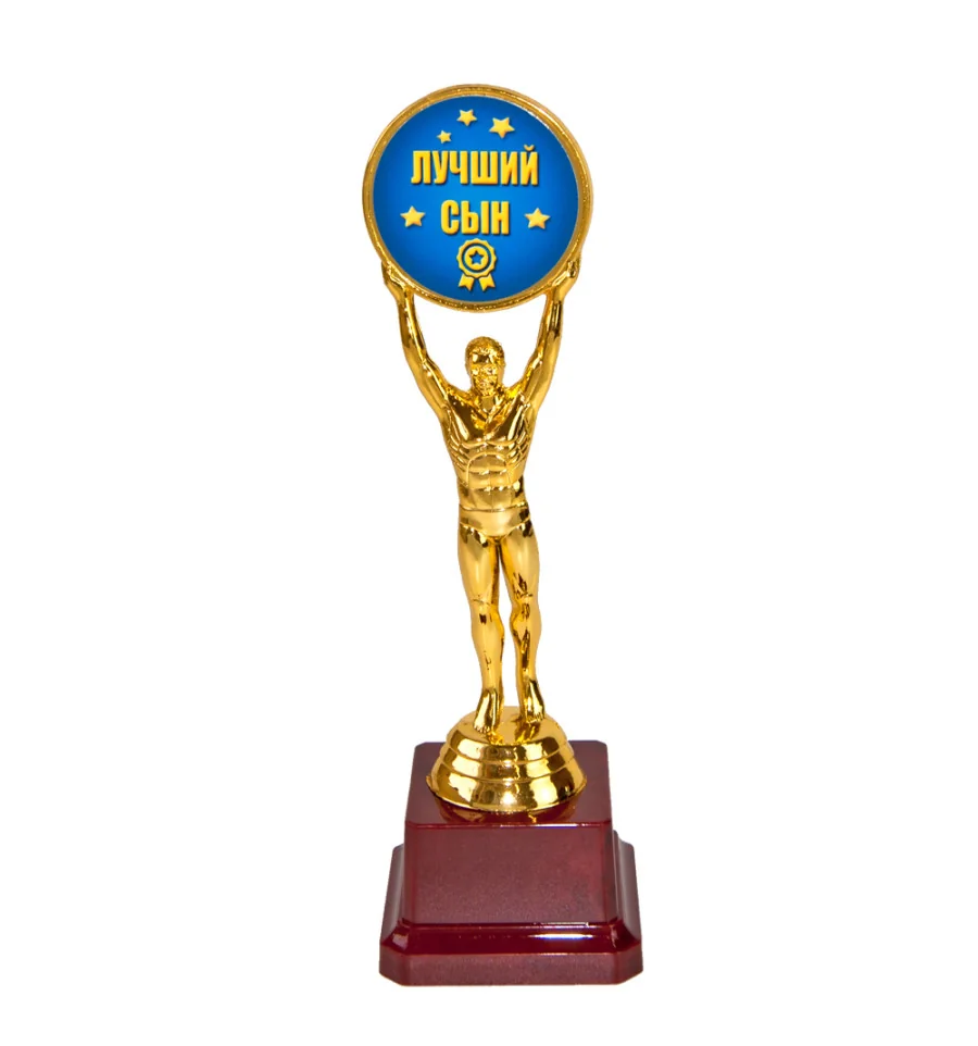 Статуетка 57270 Людина року Лучший сын - чудовий та оригінальний подарунок, яку можна вручити своїй дитині на закінчення навчання, на день народження або просто як презент разом з якимсь подарунком. Подарунок символічний і незвичайний, який говорить як дорогий для Вас вітається! Статуетка виконана у вигляді 3D композиції людини з медаллю. Фігурка виконана золотим кольором на класичному бордовому п'єдесталі. Статуетка упаковується в індивідуальний тубус з прозорого пластику. Унікальне пакування розроблене компанією PrazdnikShop. На бордовому п'єдесталі статуетки може бути присутня імітація мармурових розлучень. Оригінальні нагороди та призи в наявності та на замовлення – відмінна ціна. Великий вибір кубків, медалей та нагородних статуеток для будь-якого приводу в інтернет магазині PrazdnikShop.