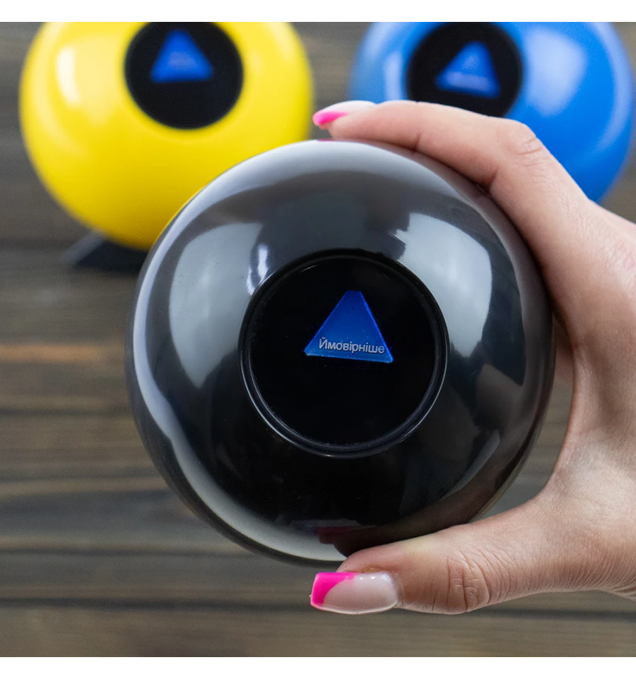 Ви не можете ухвалити рішення? Не знаєте, який шлях вибрати? Магічна Куля Провісник українською мовою (10см) чорнийдопоможе вам у прийнятті рішення! Відмінний подарунок друзям чи коханим, класна розвага для компанії! Куля Провісник українською мовою (10см) чорний - це не електронний пристрій. Принцип роботи його простий. Кулю розвертають тильною стороною. Задається питання кулі. Після цього куля перевертається і у віконці кулі спливає відповідь. Спливає у прямому значенні. Усередині кулі розташована колба із забарвленою рідиною, в якій плаває тетраедр із варіантами відповідей. Ця система забезпечує рандомність відповідей. У виробі немає батарейок та інших електронних елементів. У зв'язку з цим може випливти не межа багатогранника, а його ребро. У такій ситуації потрібно провести повторні маніпуляції щодо приведення в рух тетраедра всередині колби (потрясти, покрутити) і отримати один із варіантів відповіді. Варіанти відповіді українською мовою. Інтернет магазин PrazdnikShop пропонує купити цікаві та оригінальні подарунки за доступними цінами. Ваш подарунок радуватиме свого нового власника ще дуже довго, даруючи посмішку щодня!